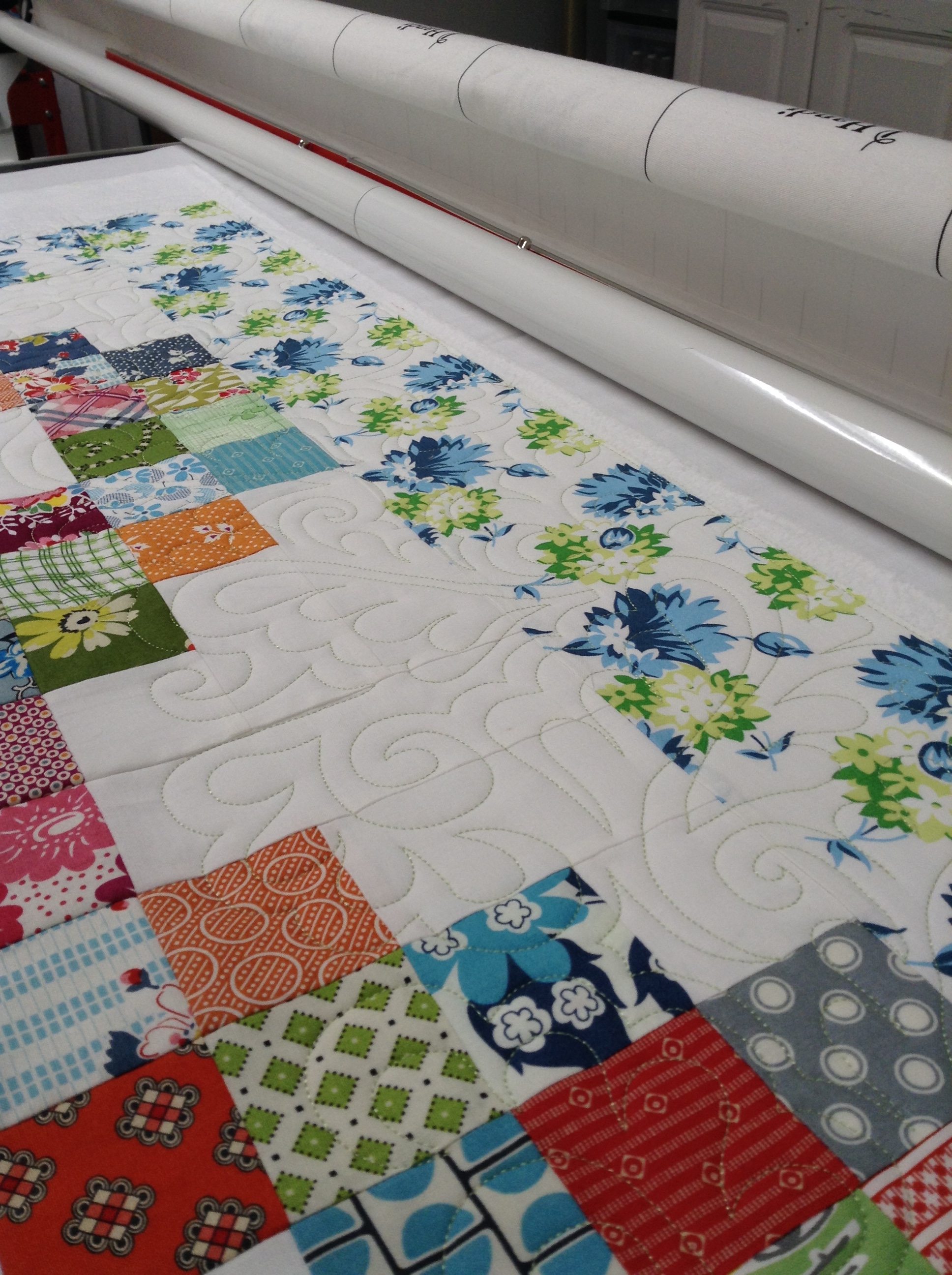 I finally started quilting the sister quilt. As soon as I got the first row of the pantograph done, I was regretting it.