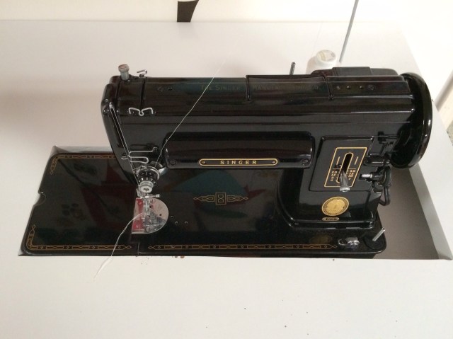 I posted this picture of my vintage Singer 301 in my sewing desk and I had questions about the desk itself. So this post is to show it a bit more clearly. Here is a picture of the whole thing.