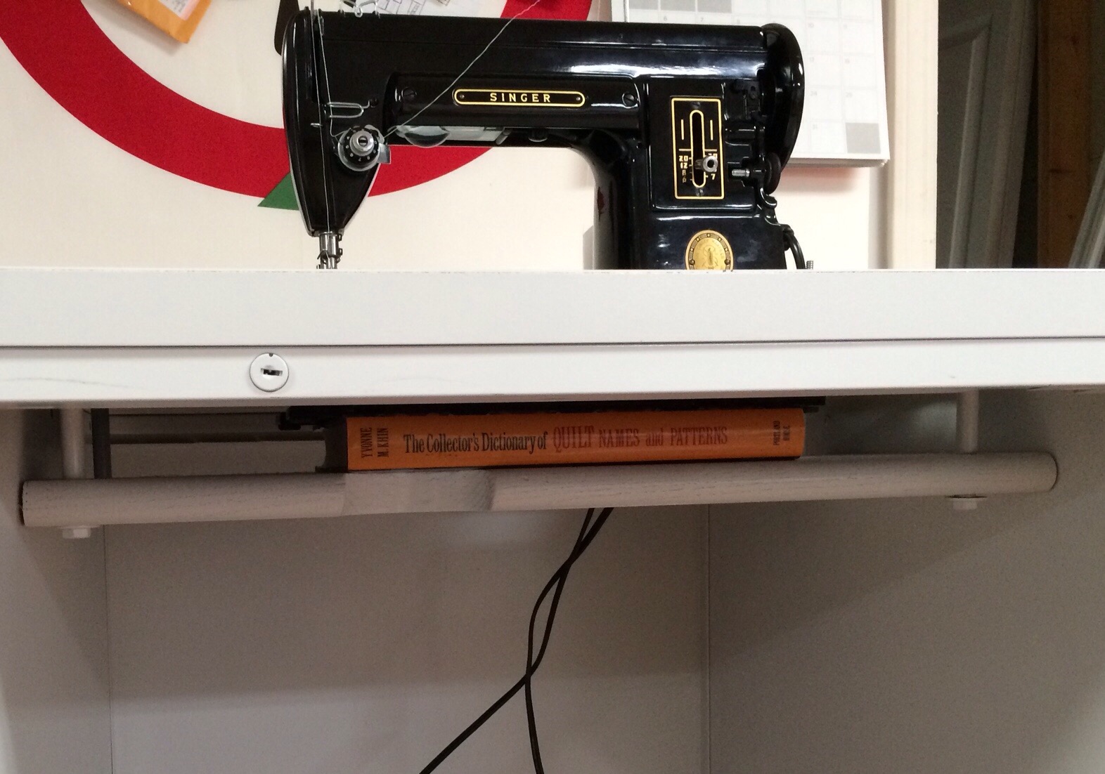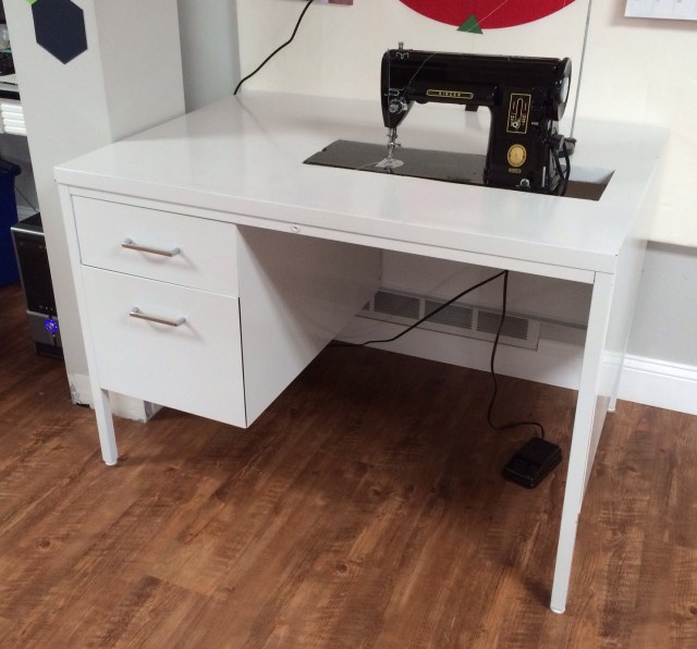 I recently added a General Fireproofing tanker table to my sewing room. It has the rubber top and I will not be cutting into it but it weighs a ton and it’s not very big! I can barely budge it. I do like your white paint. It looks so clean and streamlined. I sew on two 301’s. I’m keeping one with a 1/4″ foot on it and the other for straight stitch. Love them and I may add a third just for the walking foot.