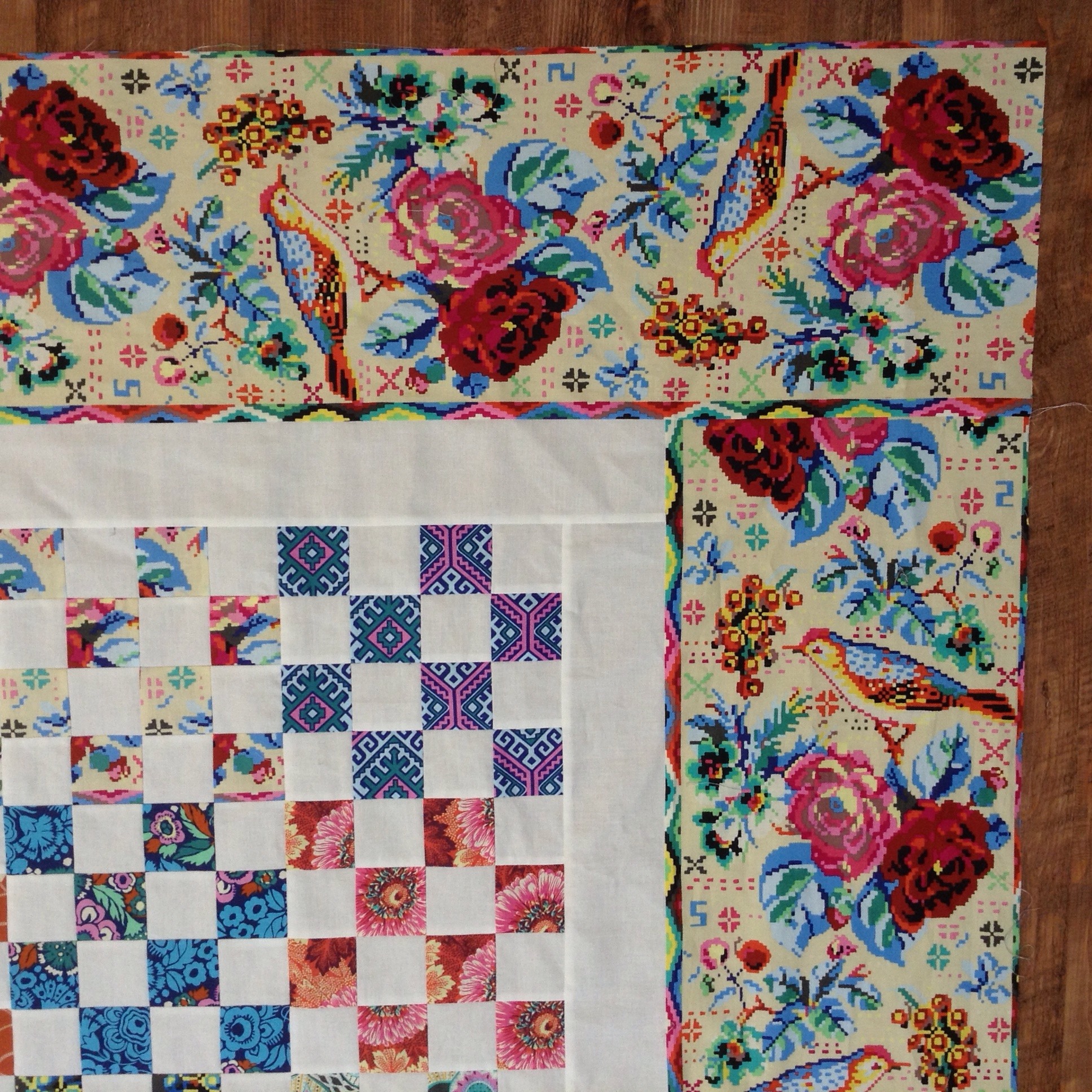This is looking lovely & colourful! and that thin edge on your pretty border fabric really frames everything beautifully!