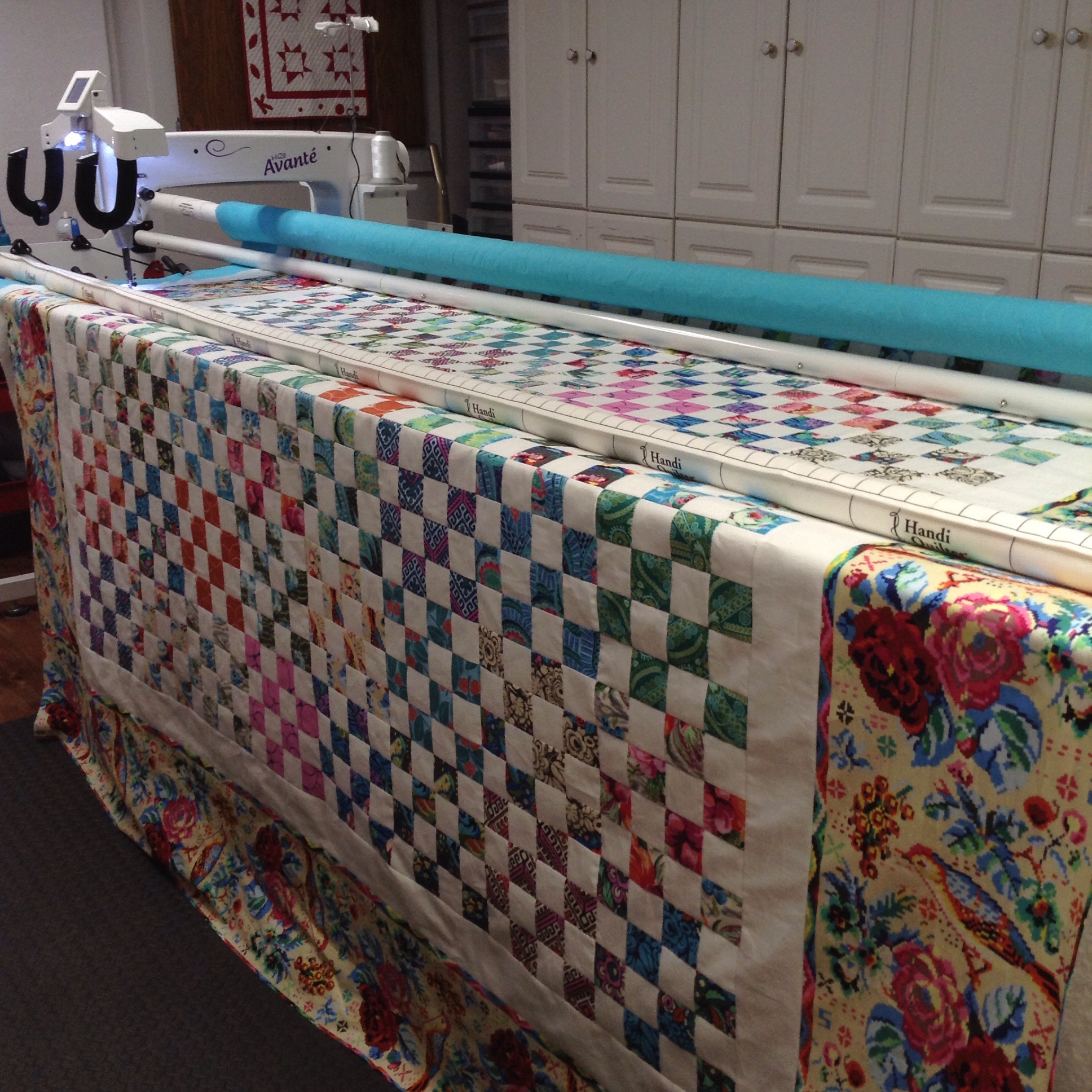 I don’t know what it is about Berninas, but I prefer mine for bindings, too. Must be something built into them. What a lovely border you have added to that 16 patch.