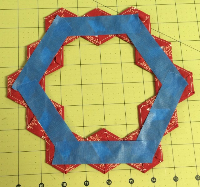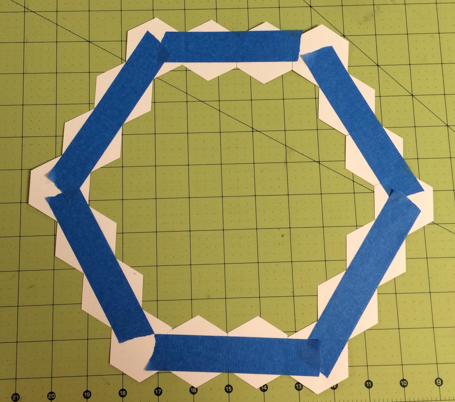 Nope. Not working. I didn’t have enough red hexies prepared so I just taped the templates together for m next try.