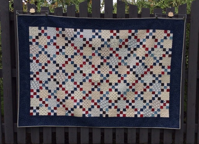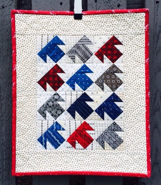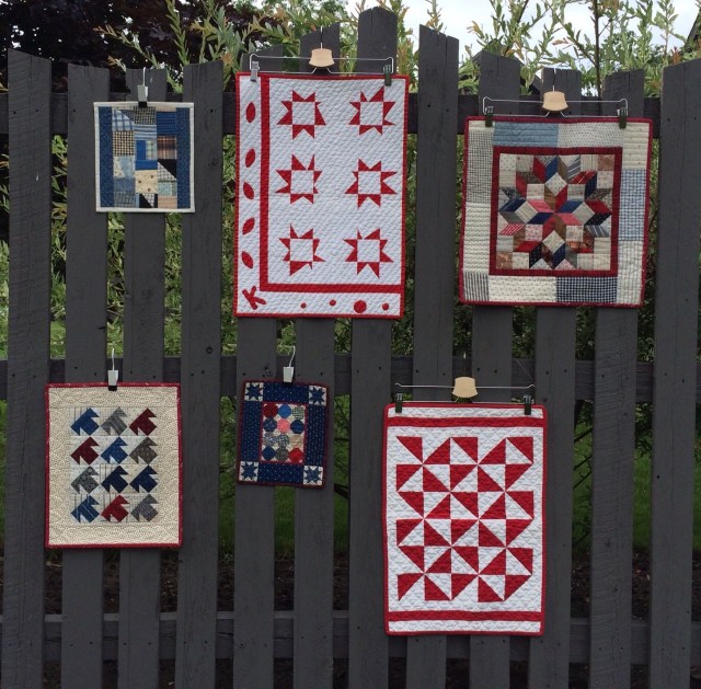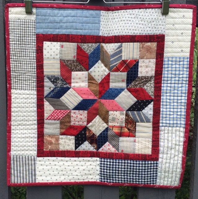I have those conversational prints too — loved what you did with them! Love the display of your mini quilts, they make a wonderful display! Particularly like your Carpenter’s Star with the shirting border.