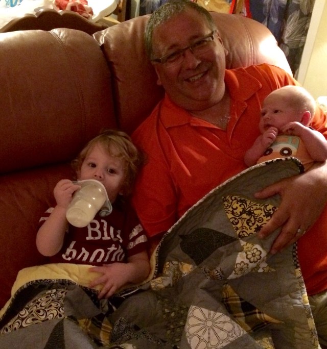 Here is little tiny guy with big brother and Papa.