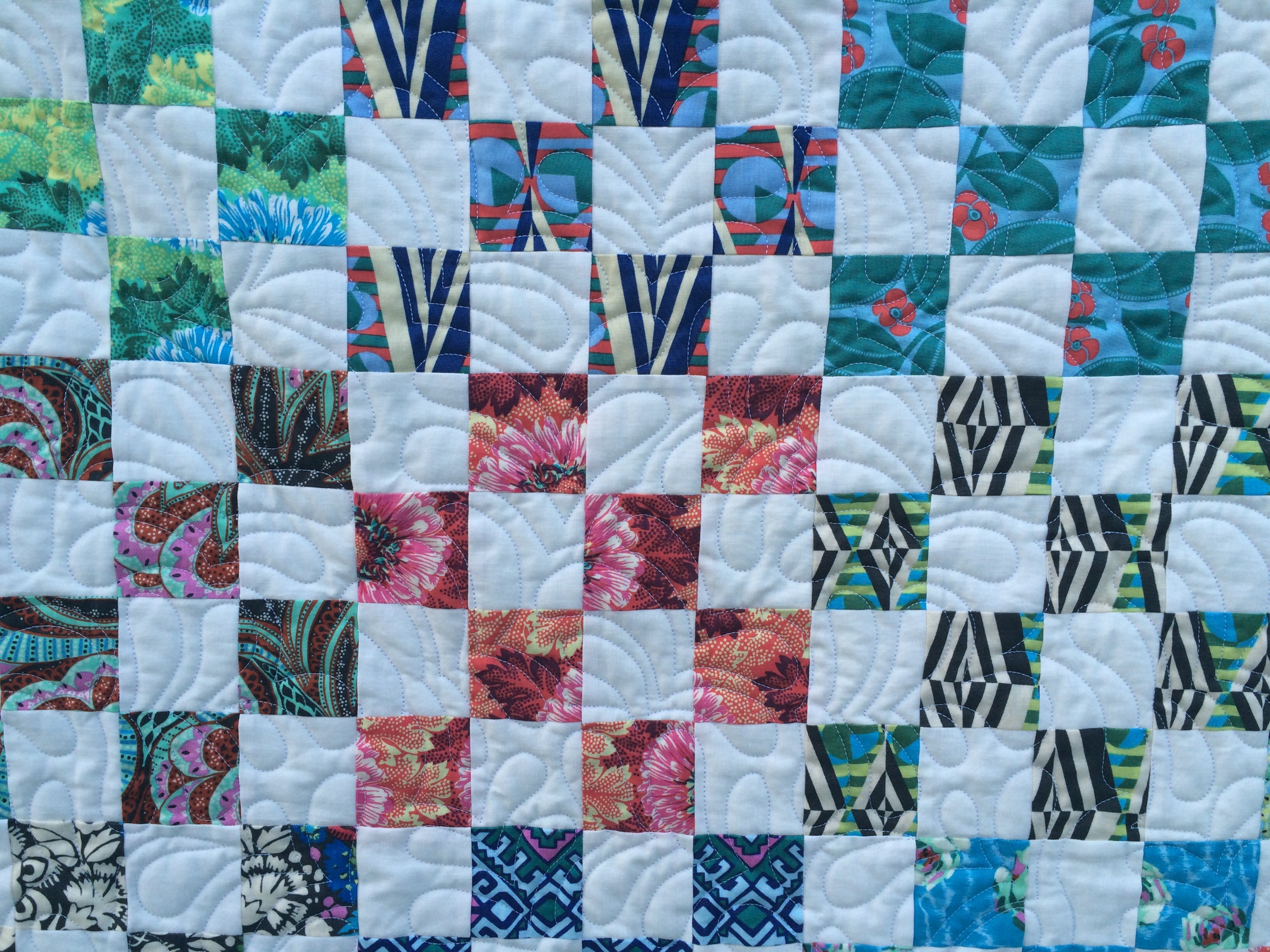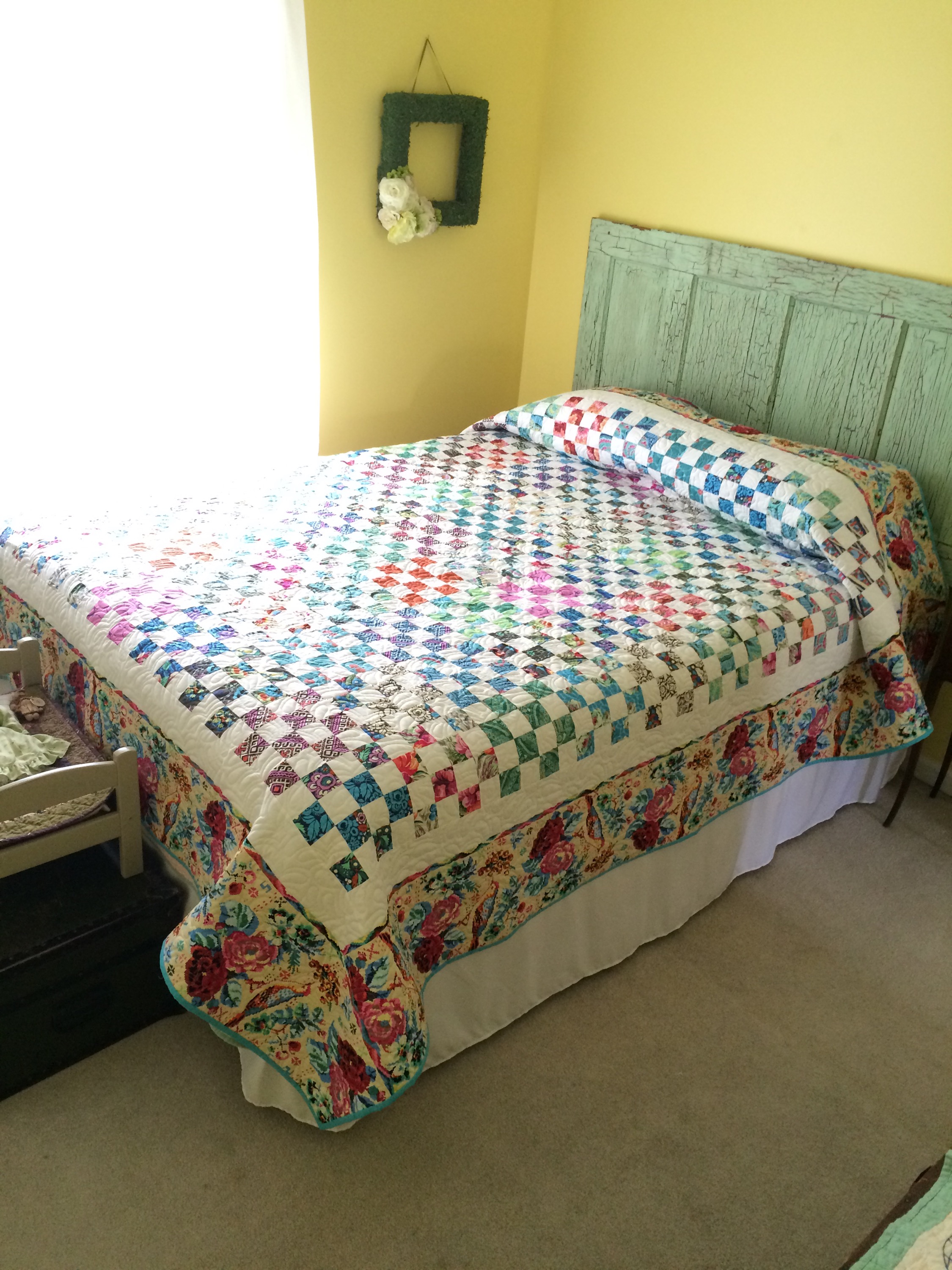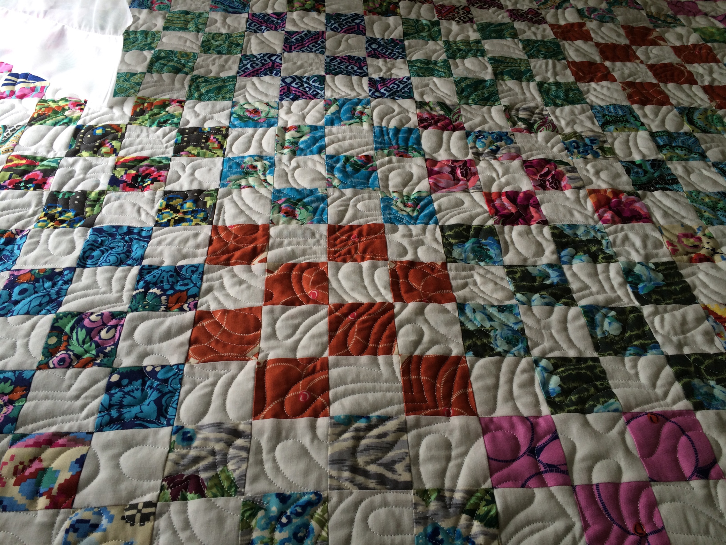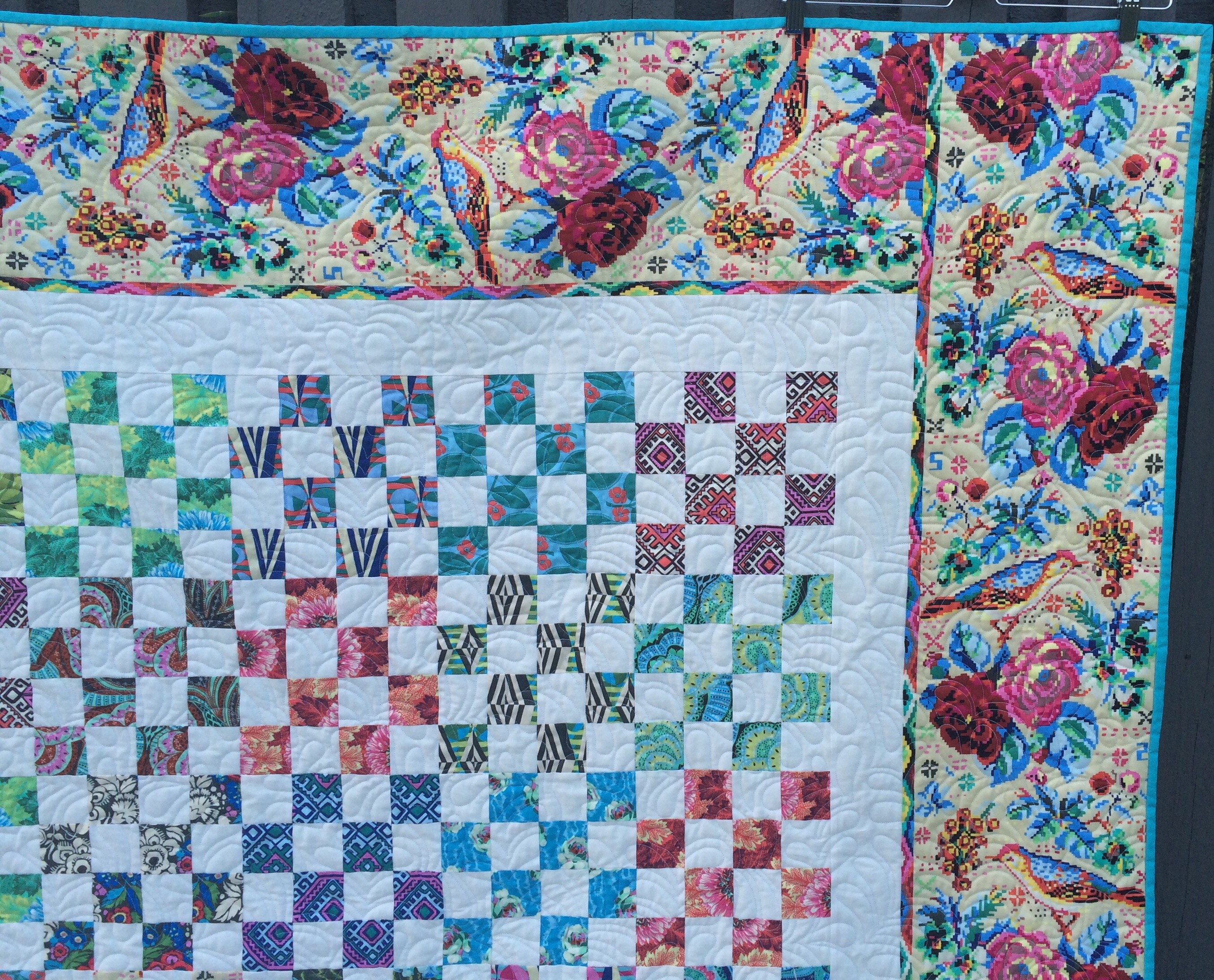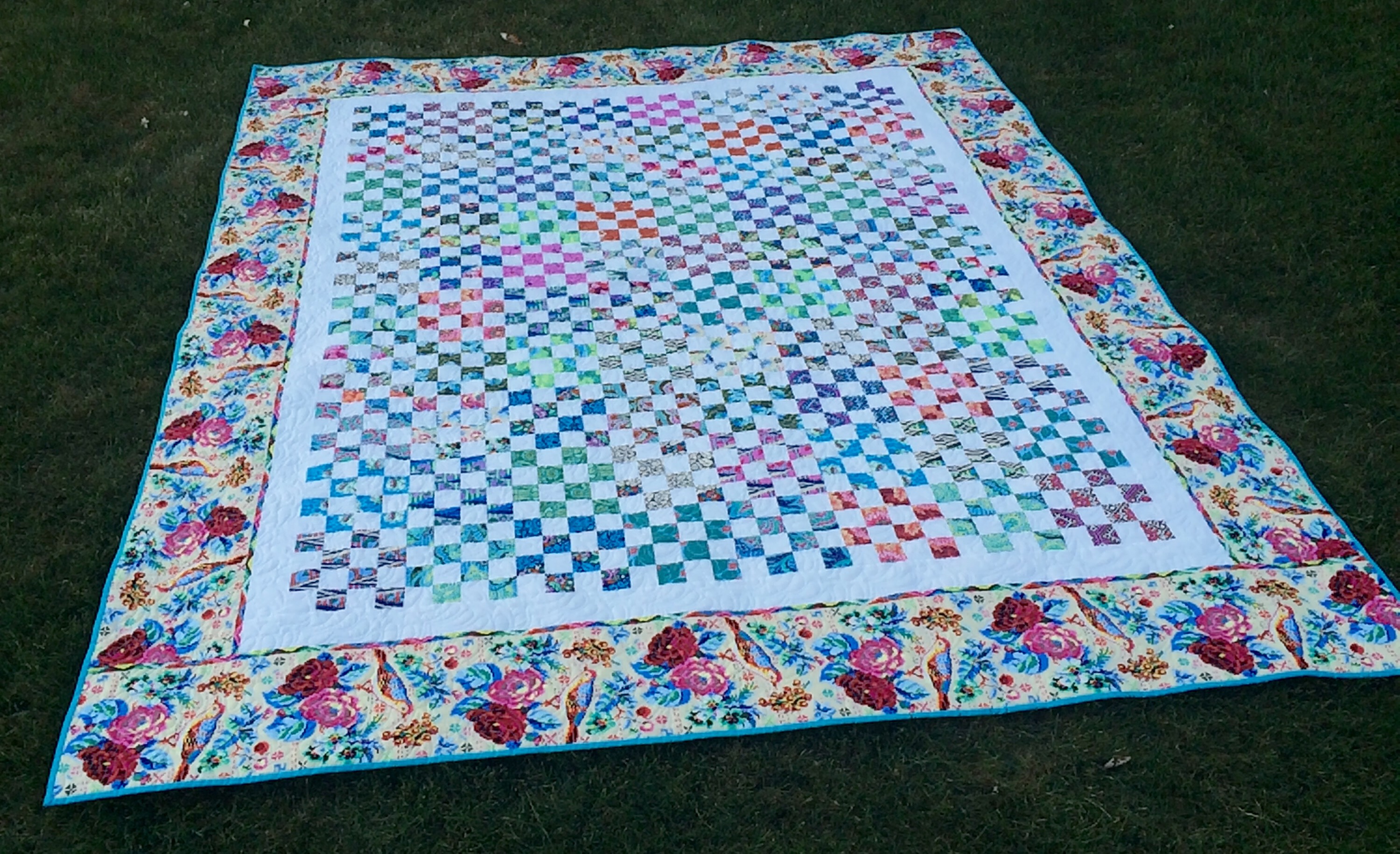 Though I’m sure you’re aware, that’s a big quilt with a lot of squares! Congrats on finishing! The border print was a great choice.