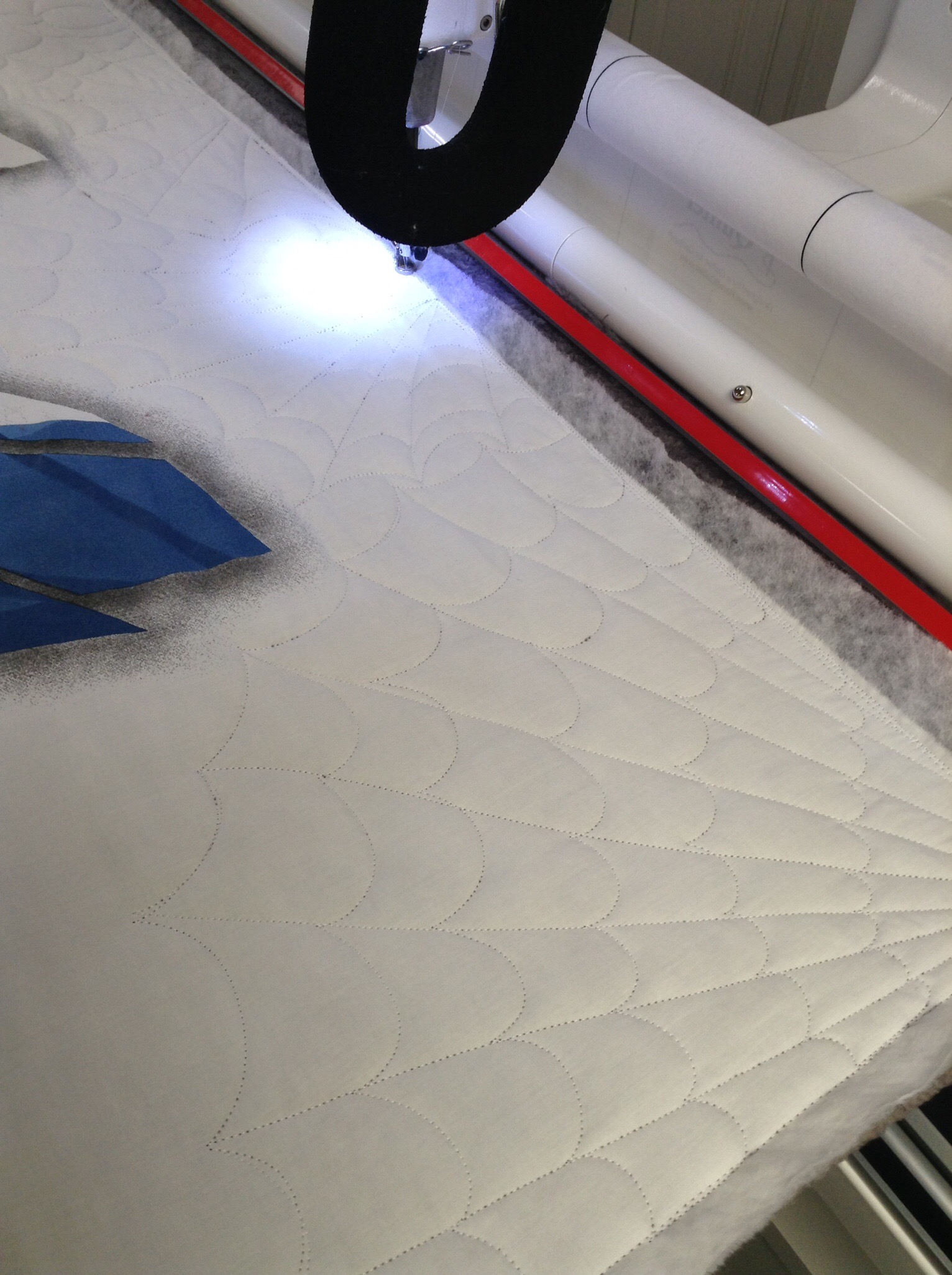 Little E took a great nap yesterday and I was able to get Spider Man loaded and half the quilting done.