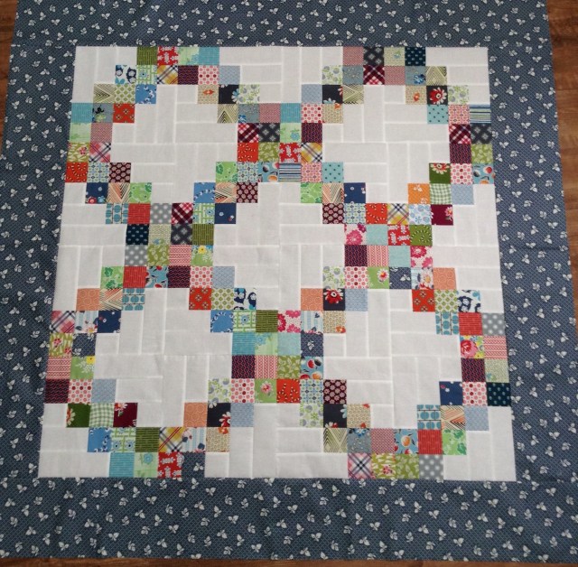 That little patch is totally unnoticeable in the overall scheme of the quilt! Very pretty, and love your quilting scheme too! Can’t wait to see Spiderman – still singing that song in my head….thanks to your lovely quilt!
