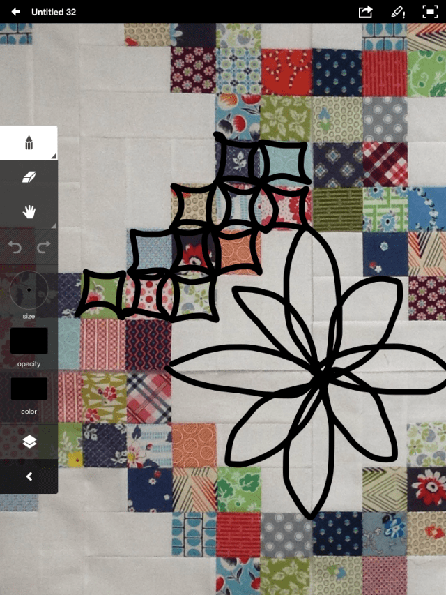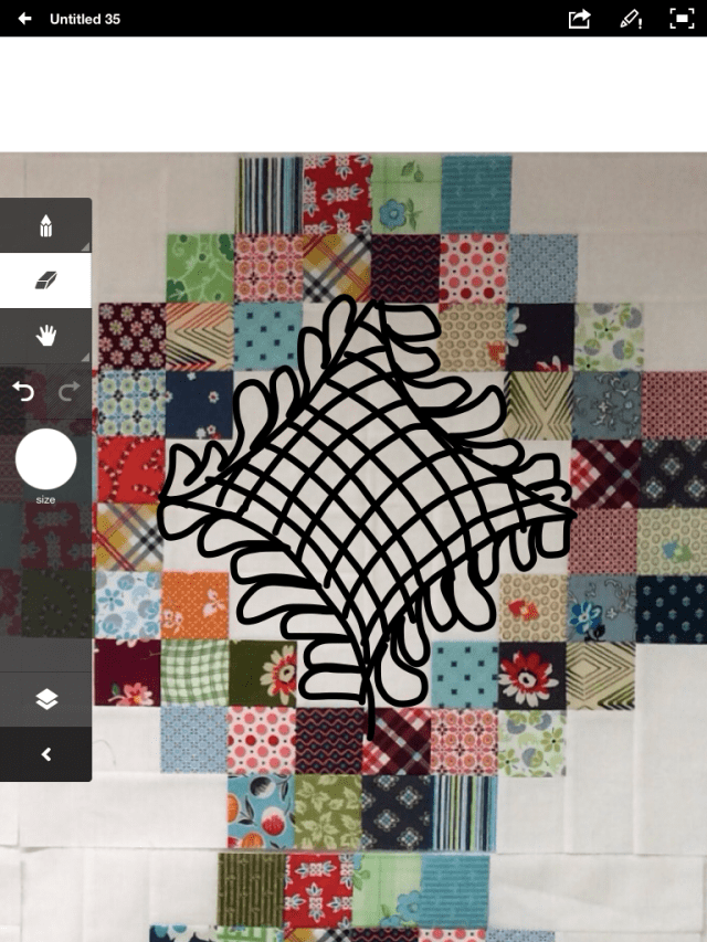 You are basically drawing with your finger tip with this app. And clearly, I am not good a that! But it does help to visualize the quilting.