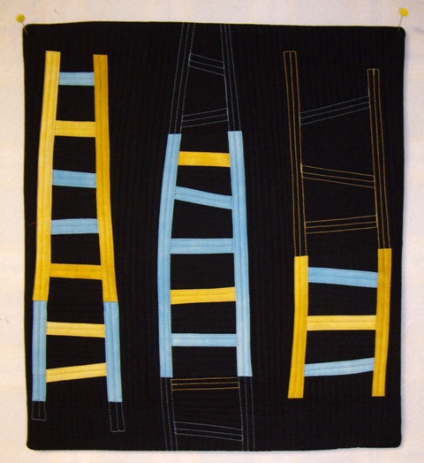 I especially like the one in the third picture. I think it’s how you did the quilting, and extended the ladders into the background. Very clever!!