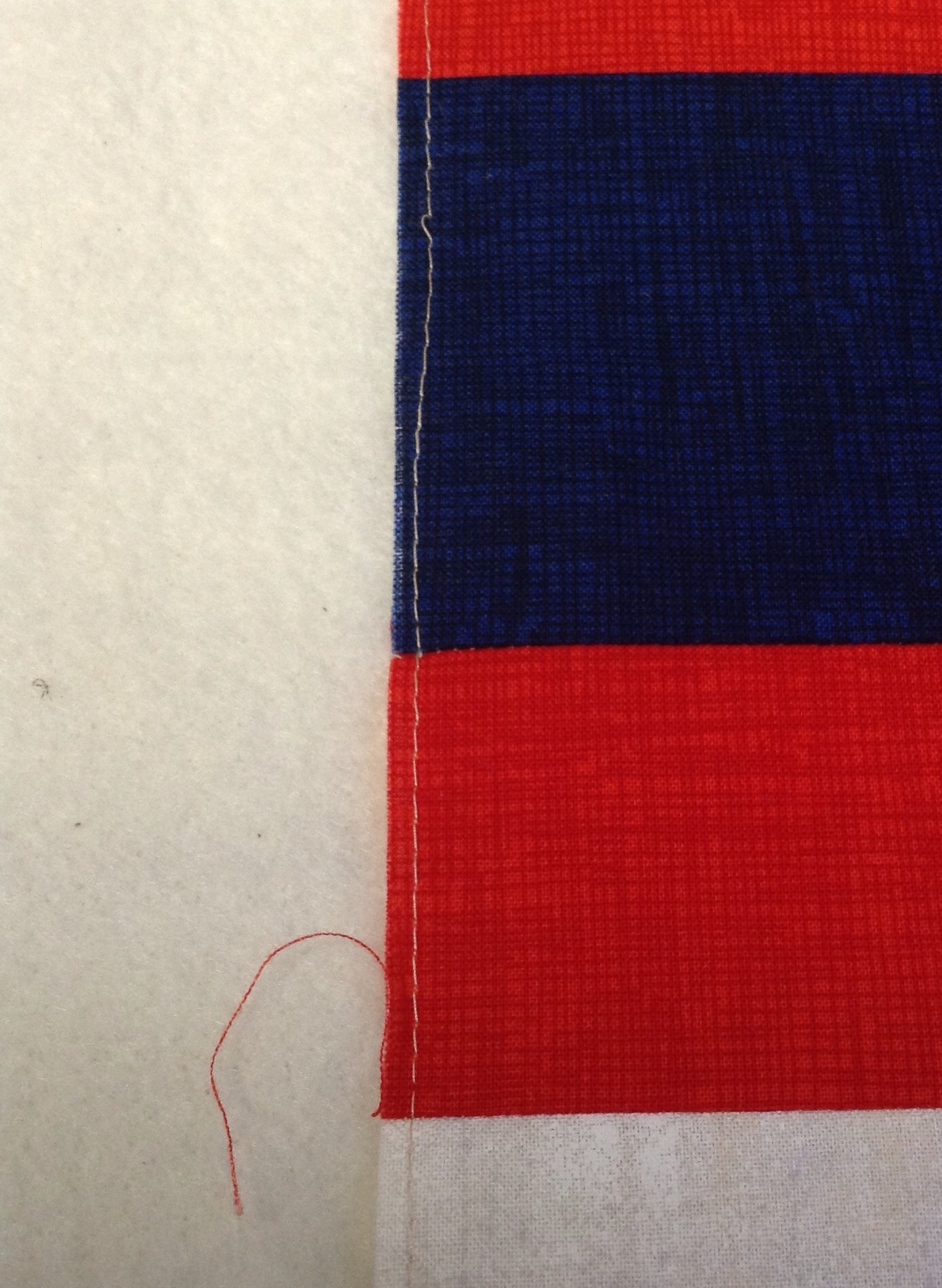 See the line of stitching? She stay stitched all around the edge of her top. This is really important with tops that do not have borders. It means that I don’t have to worry about any seams coming apart while quilting her top. This isn’t a must do step with a quilt that has solid borders, but it really helps if you secure the ends of your seams.