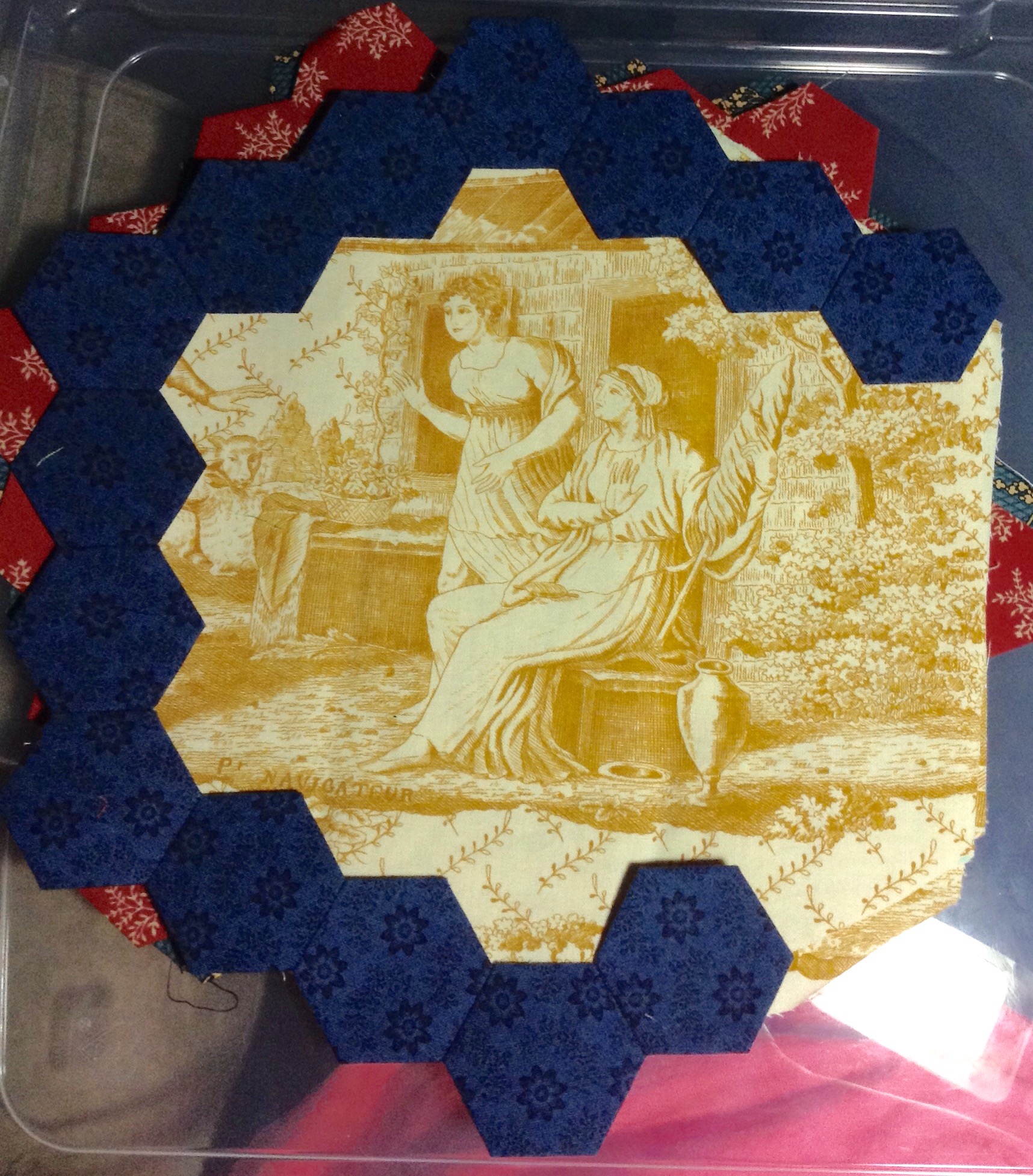 Lovely piece you have there–I love toile prints…happy stitching hugs, Julierose