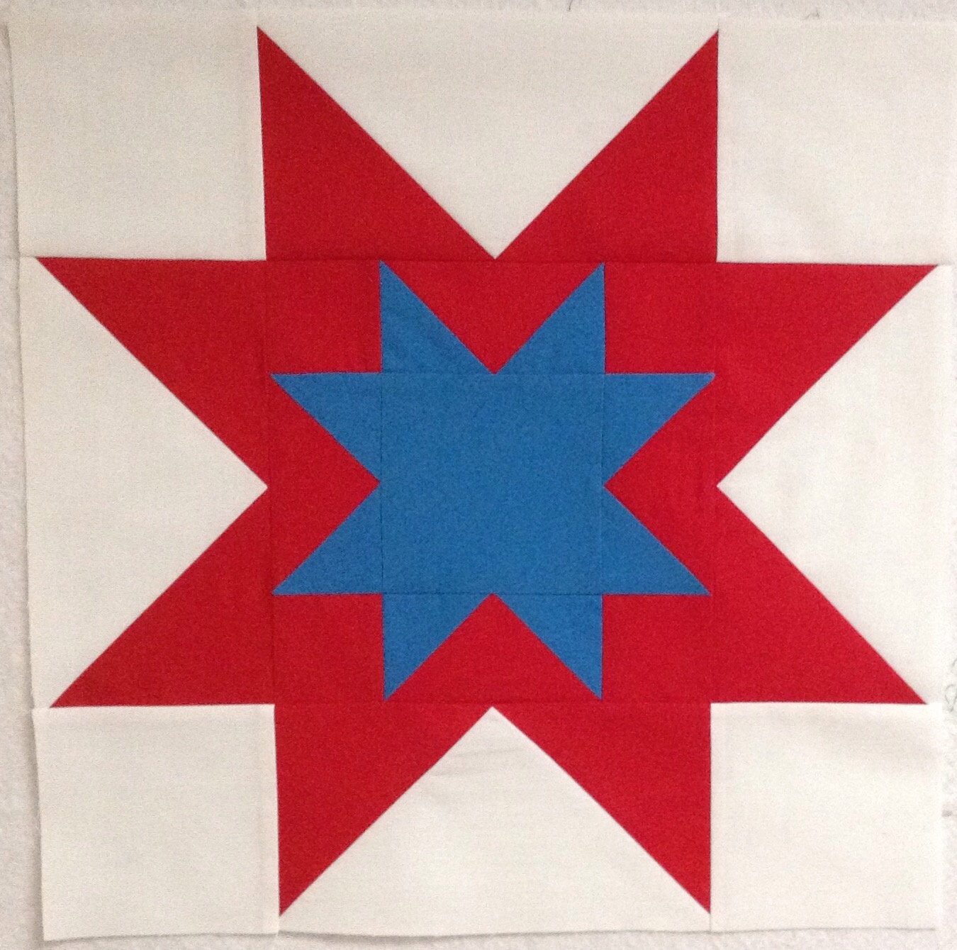 The double star block finishes at 16 inches and the flying geese are each 4 by 8 inches.