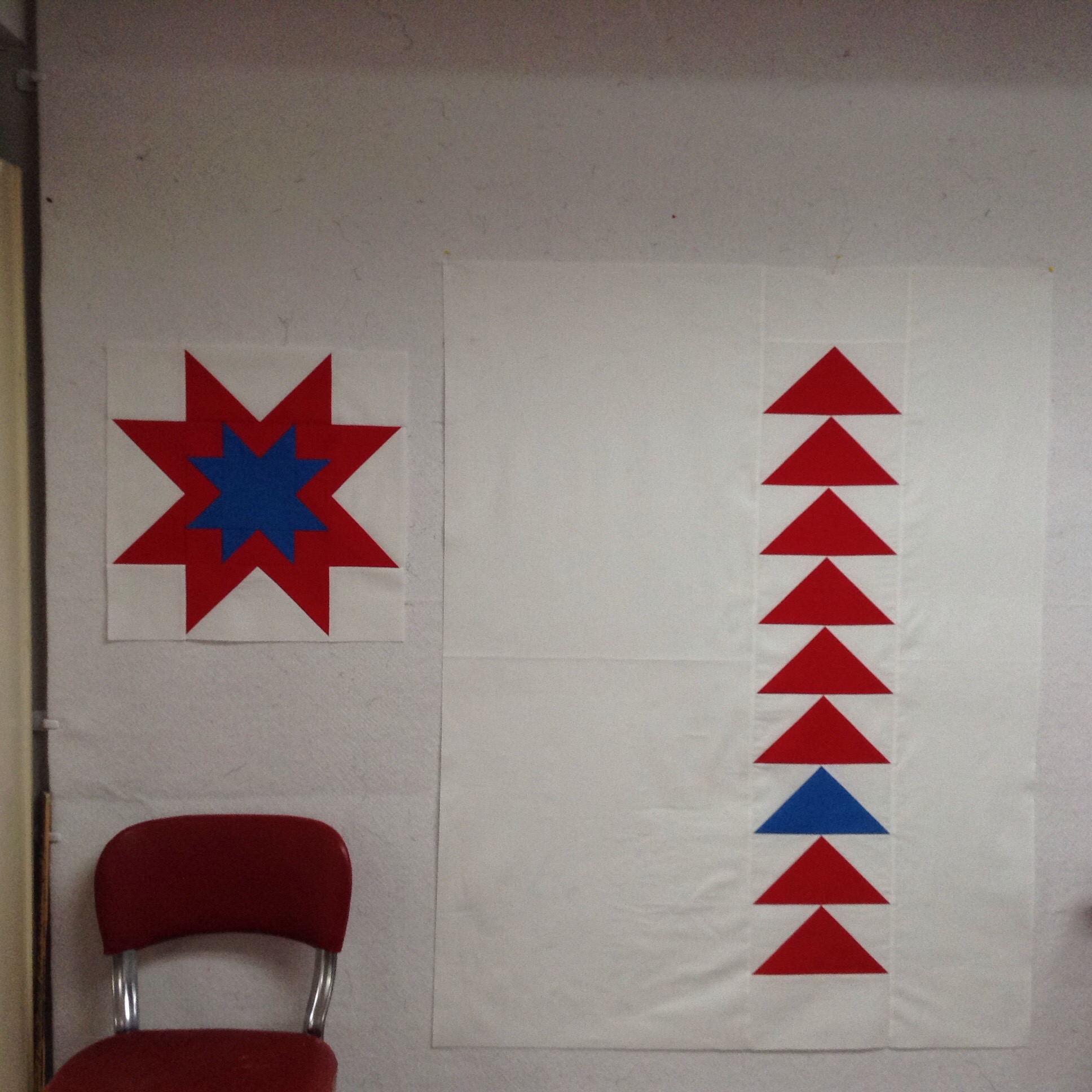 Busy, busy, busy! Great idea, quilting two baby quilts on your long arm side by side. You should be able to do lots of fun quilting in the negative space for both of these, and I like the bold graphic designs. Very fresh and modern.
