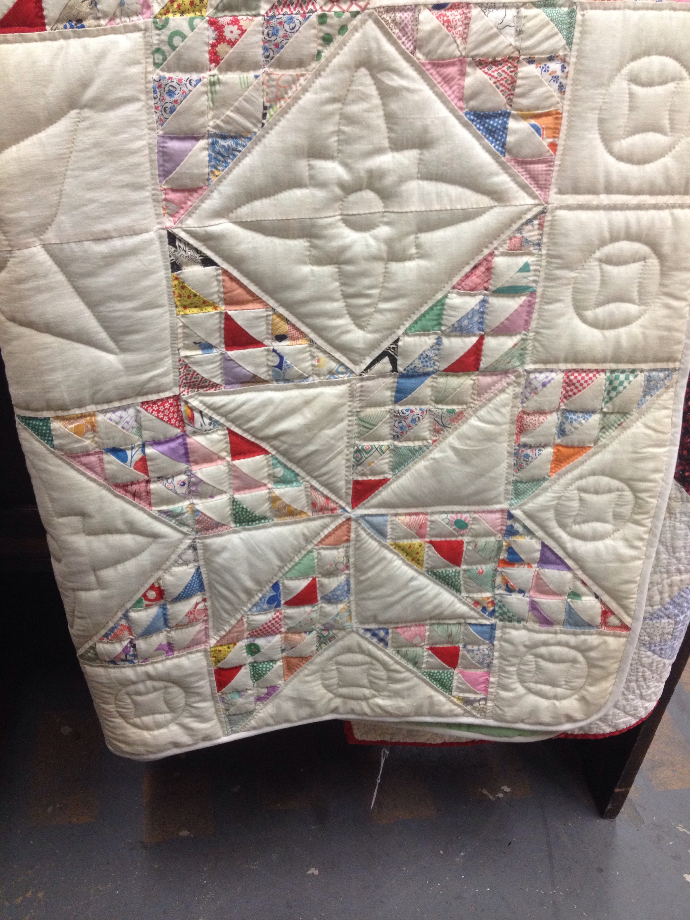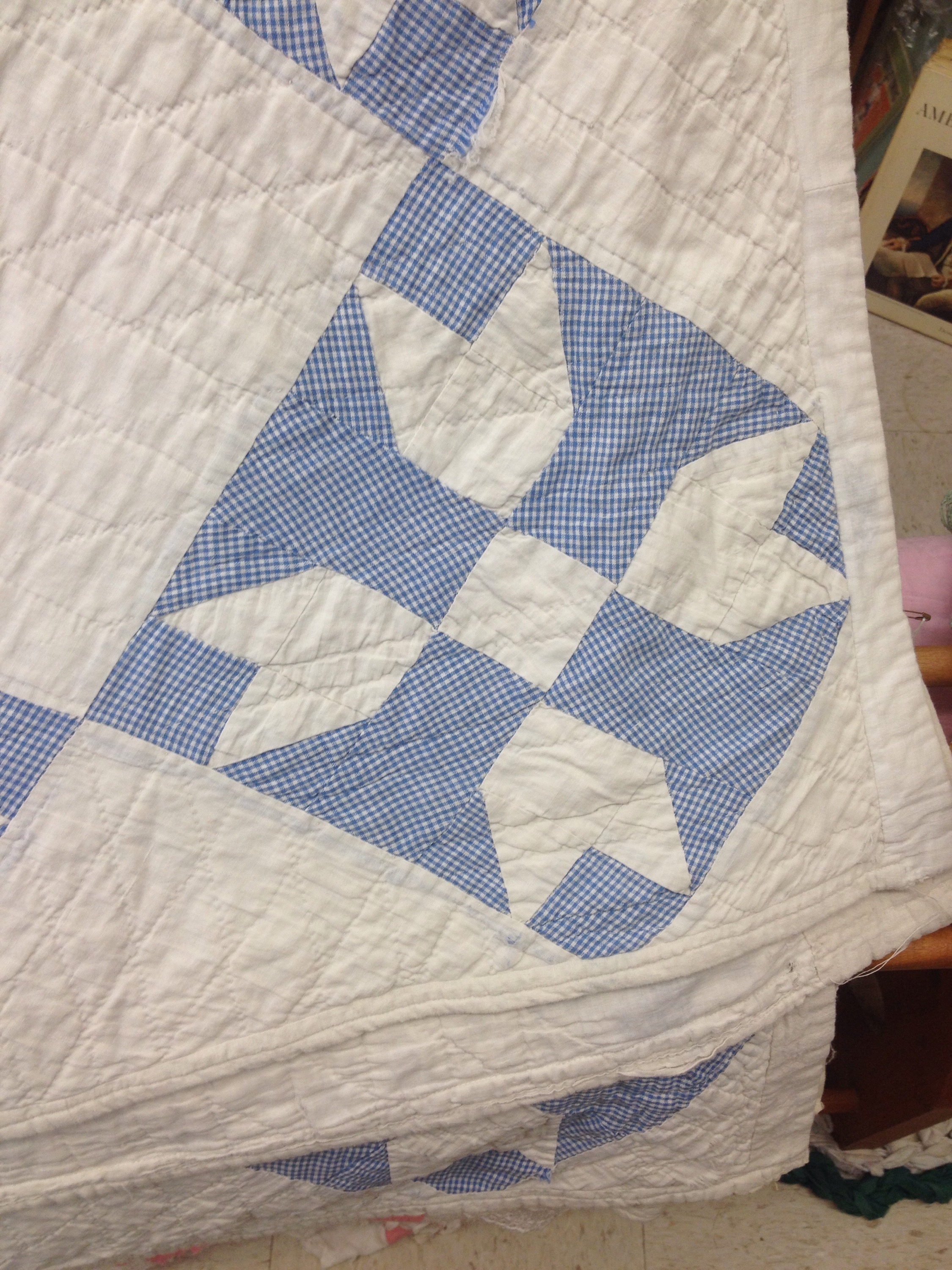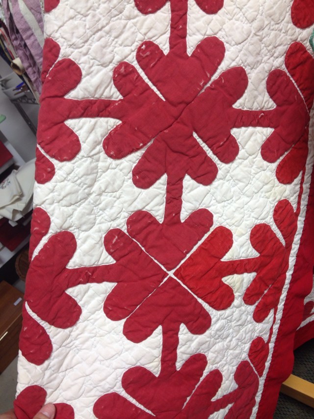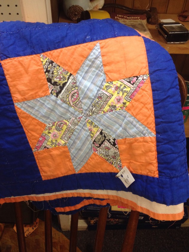 Mr. Wonderful and I have hit a number of antique shops while traveling. Here are some of the quilts we spotted. None are coming home with me but it is fun to look!