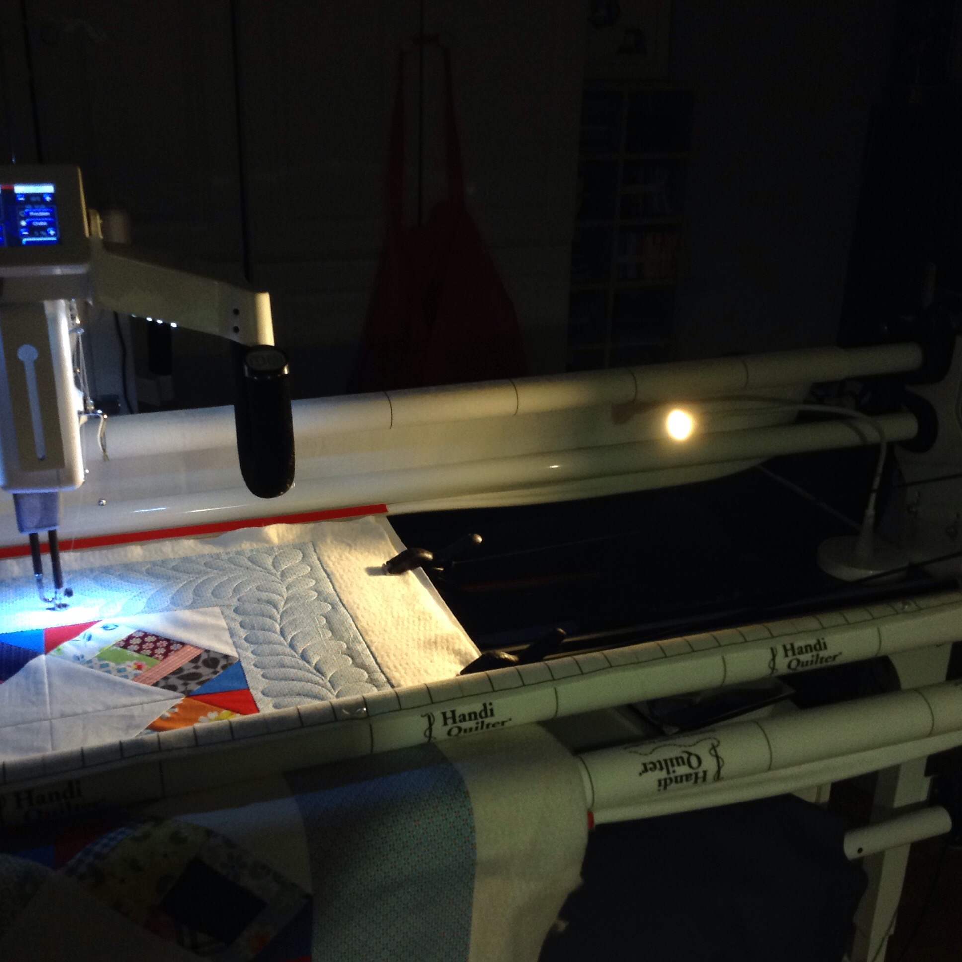 Quilting with just a desk lamp for lighting looks kind of romantic! That’ll be one beautiful quilt.