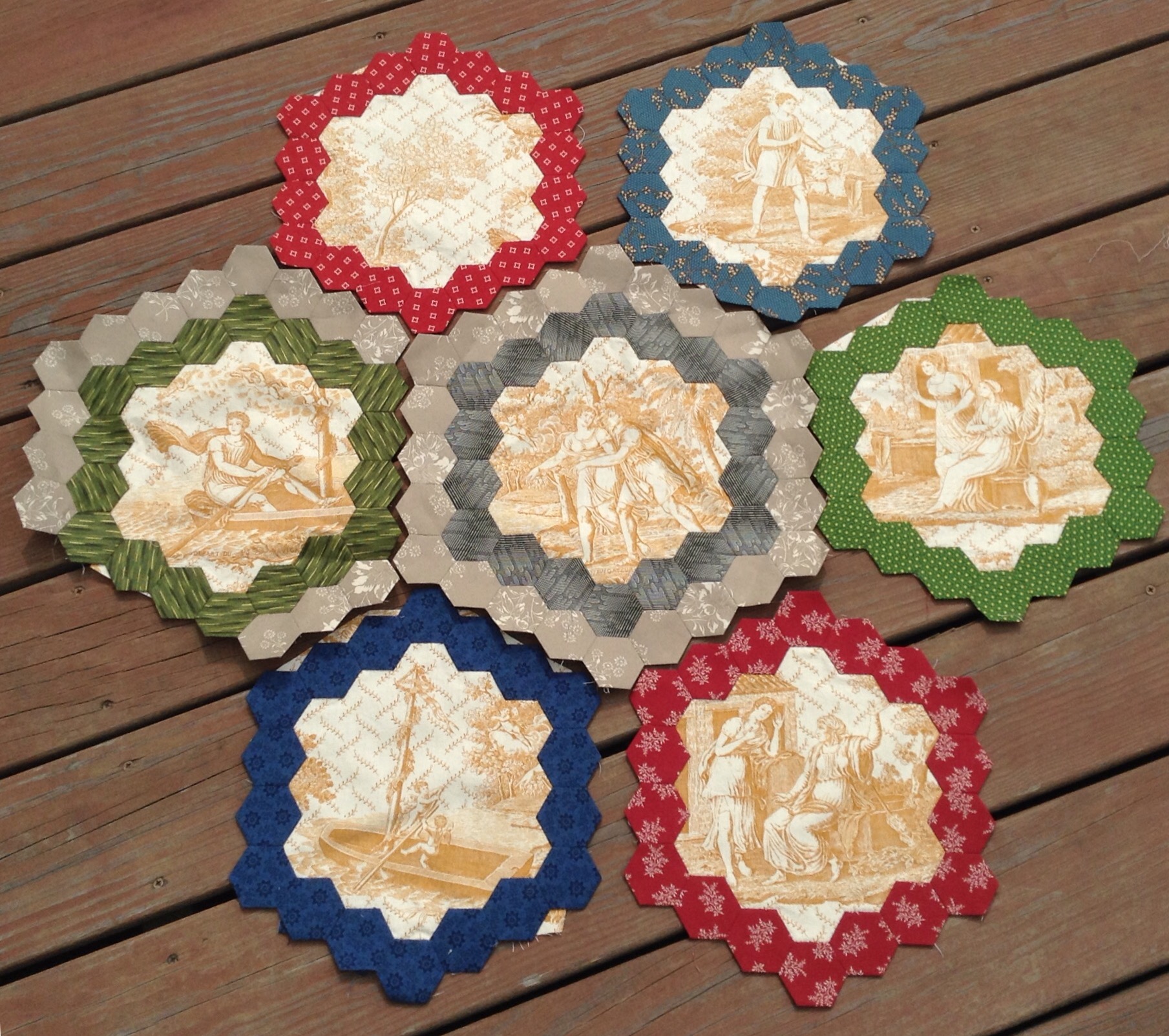 Funny! I picked up some honeycomb papers while on our way here … and some hexies to start a POTC – some day. I can’t imagine not having an EPP project for when we travel. 😉