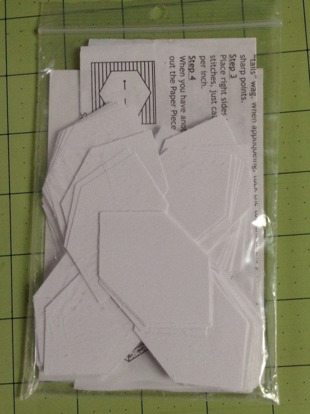 I picked up another package of needles that had been recommended, a single FQ, and some cut paper pieces for more EPP!