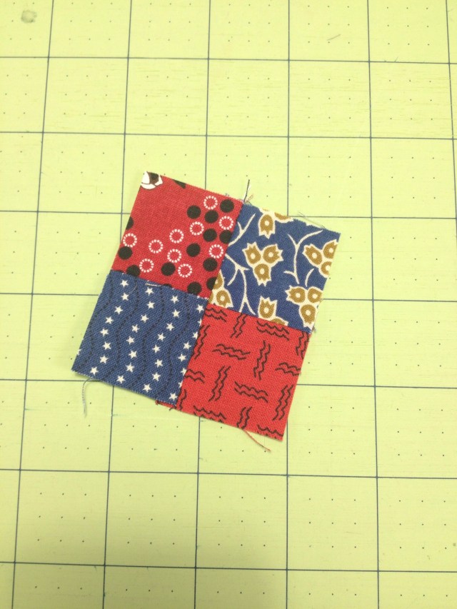 One of my strip sets was too short and another too long. So one of my 4 patches ended up like this.