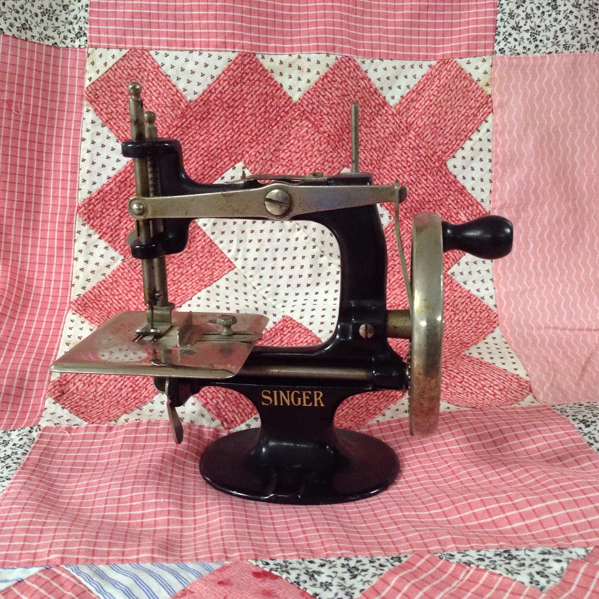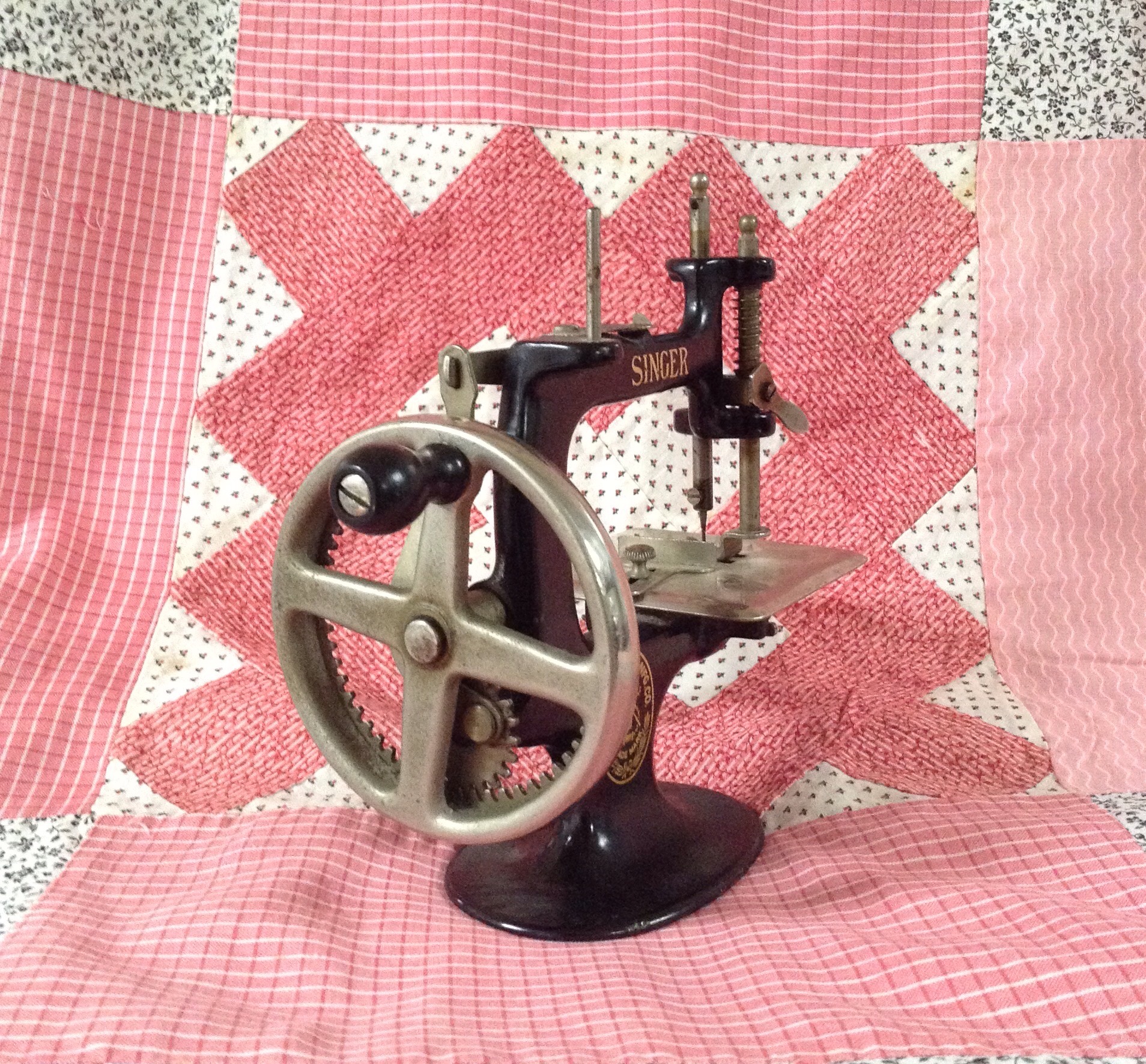 Can that toy machine really be used? It is charming and looks perfect on that double pink quilt. Enjoy it. Your quilt turned out very pretty and soft looking.
