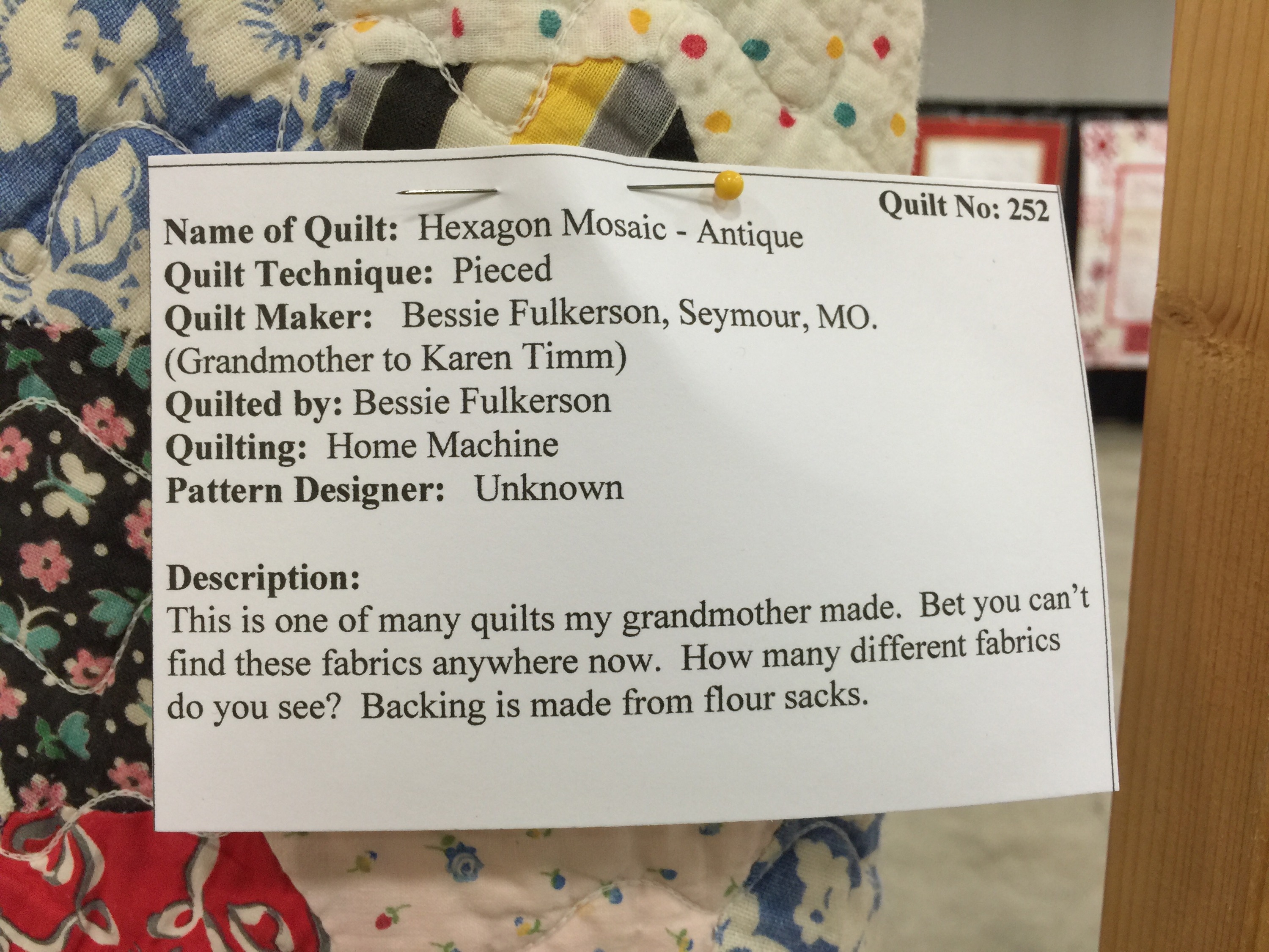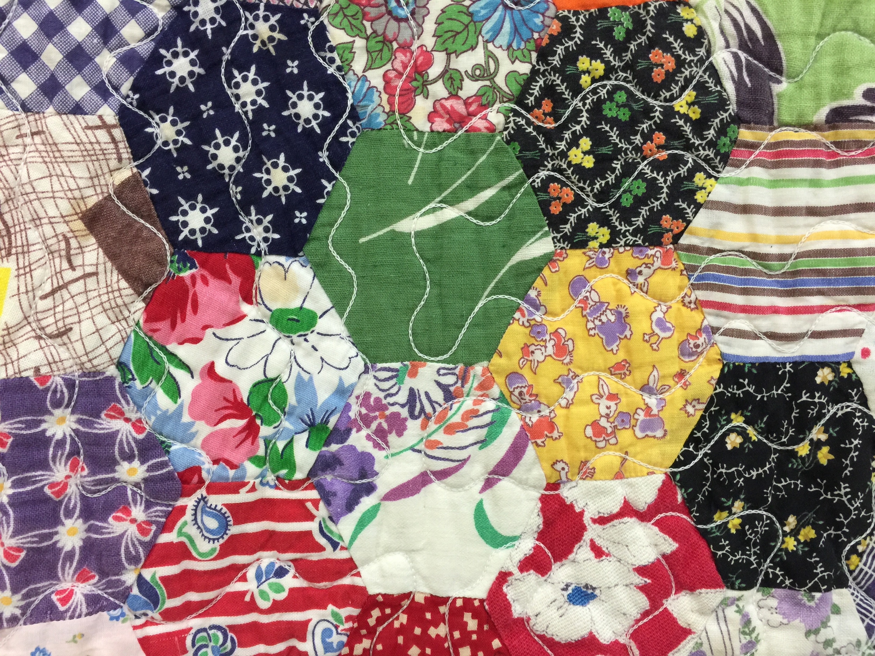 How odd not to display the entire hexagon quilt. Perhaps they were hiding a damaged area?