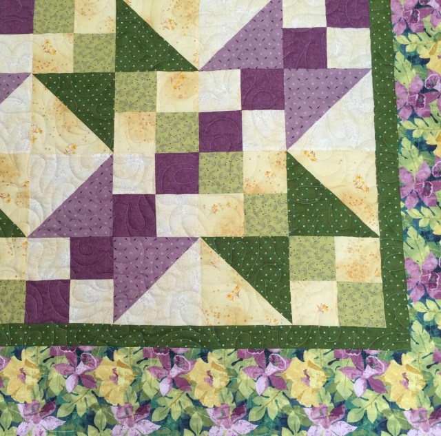 Good morning! Hubby is finally home from China safe and sound. And soundly sleeping at the moment. I finished quilting a top for my guild’s Comfort Quilts group this weekend. These ho to the local women’s shelter.