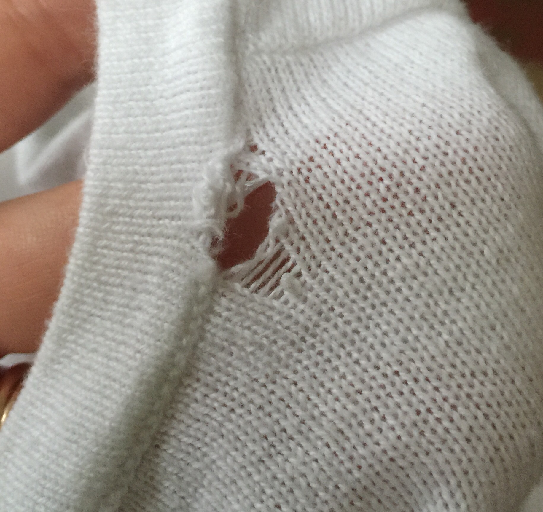 I’m going to try to mend that white sweater on top. I washed it once and this happened.