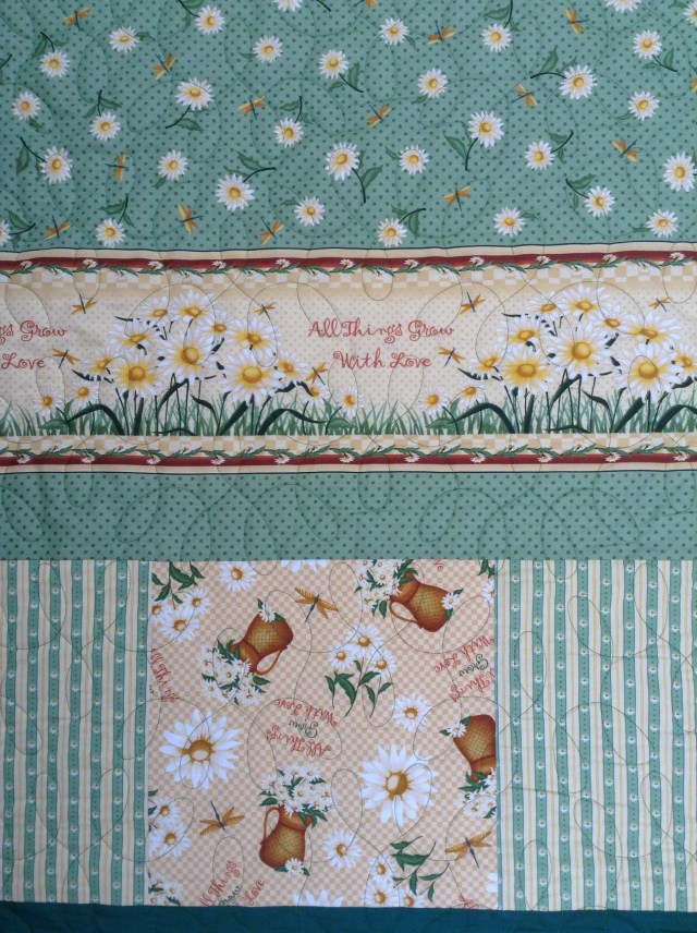 The colors are not true in the picture above but the quilting shows up. Now time to decide on a binding.