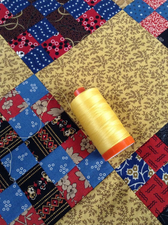 I won a lovely box of Aurifil thread a couple years ago. I love it for hand sewing but my Featherweight isn’t a fan. I decided to try it out in my long arm and it worked great!