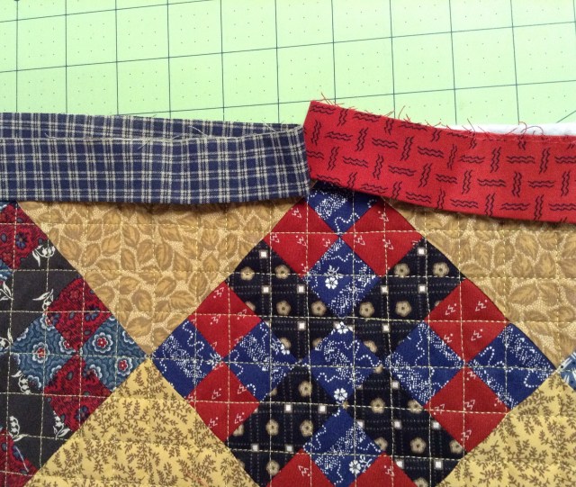 Your freehand straight lines are pretty good. I’m impressed. I’m torn about which binding to choose, but my first reaction is red.