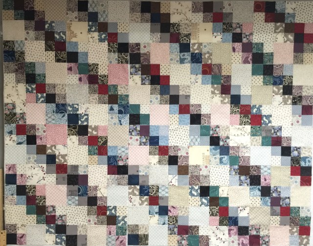 I decided to go through my pieces and make sure I had enough for the last 10 blocks and also to make sure the last few would not have all the same fabrics in them. So I matched them up and finished the four patches. This is no longer a leader/ender project, I want this one done. I plan to get as much done on this today as I can.