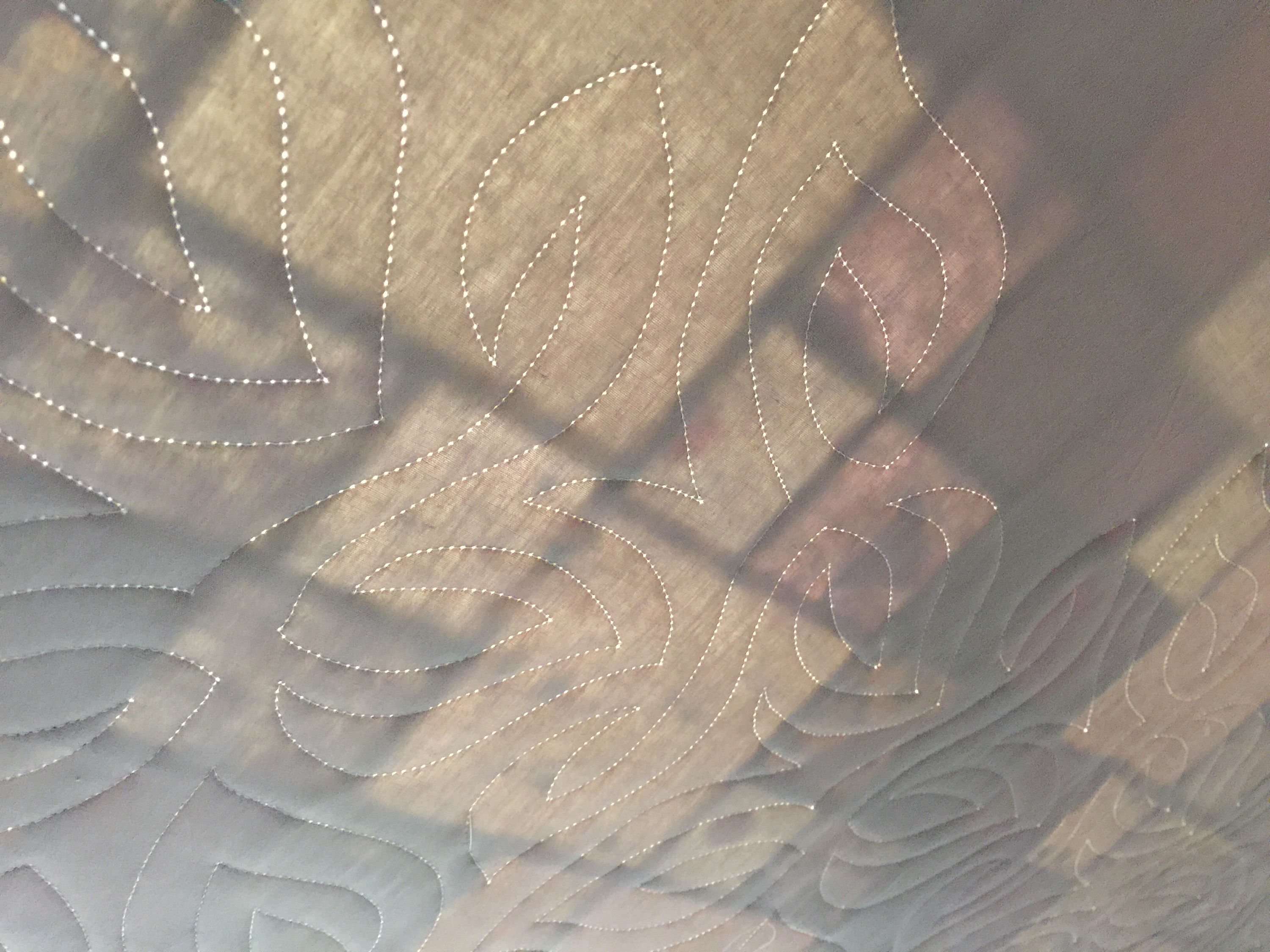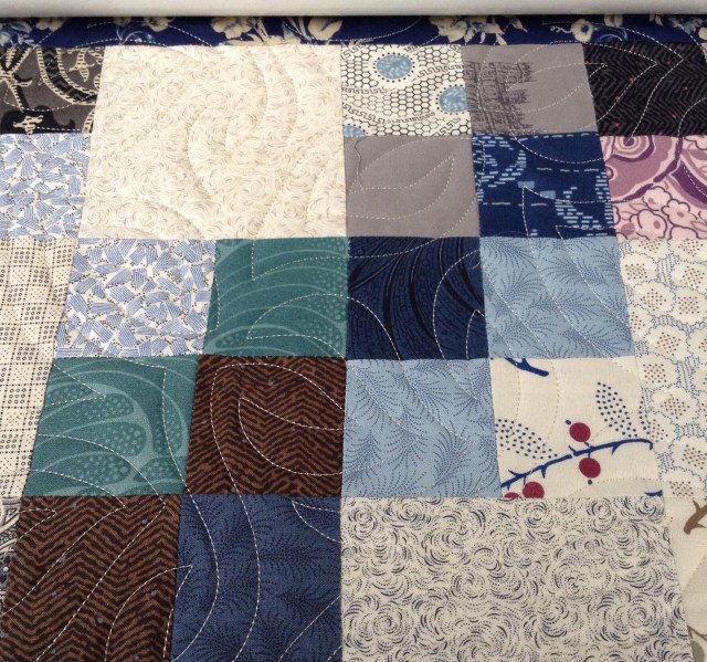 Nope, not tired at all. This is such a calming quilt, and the quilting is beautiful. I’m fascinated by pantographs, although I have no way of using one myself.