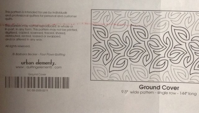 I have no idea what line that border fabric is from. I bought it last summer as SAS Fabrics in Phoenix. I’m not normally s floral person, but I really love this and I think it goes well with the Downton fabrics. Since this top is so busy, I decided to quilt this with a pantograph called Ground Cover.