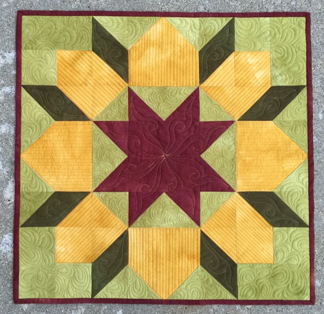 You’ve really captured the feeling of fall in this collection without using the typical orange. I like it a lot! And your quilting is always a delight.
