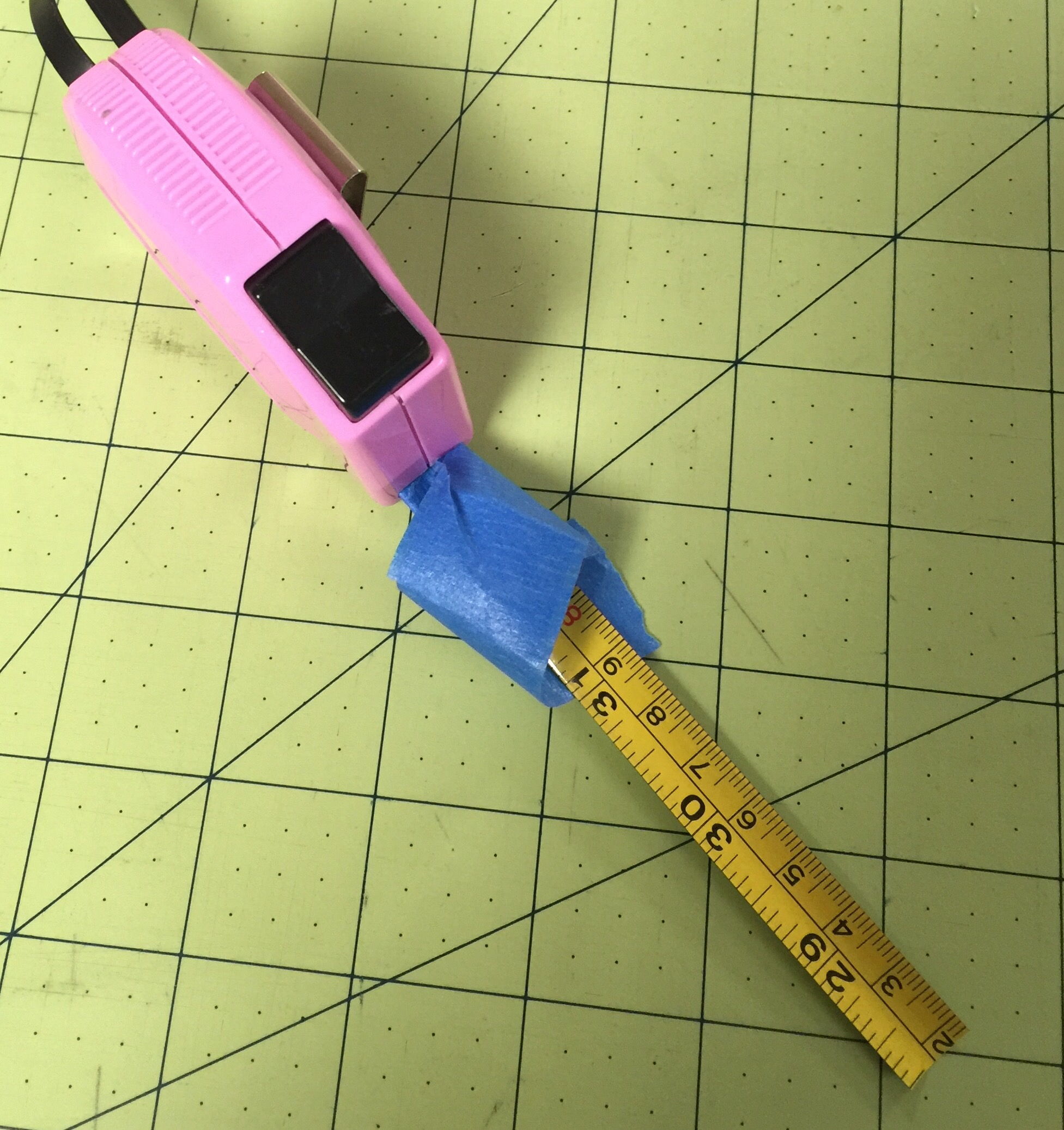 I put painters tape on the end so it wouldn’t retract into the tape measure after cutting the tab off.