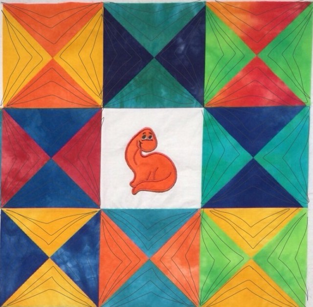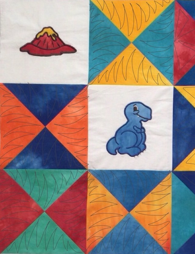 I finally have the dinosaur quilt top done and in the frame. I would like to get this quilted so I can do the binding while in Wisconsin.