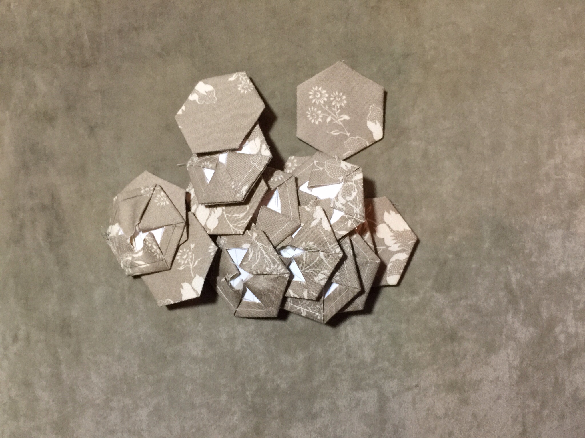 I think I am finally starting to feel rested up from my trip home to see my family. I spent very little time at all sewing while I was gone. I only managed to get a few hexies basted.
