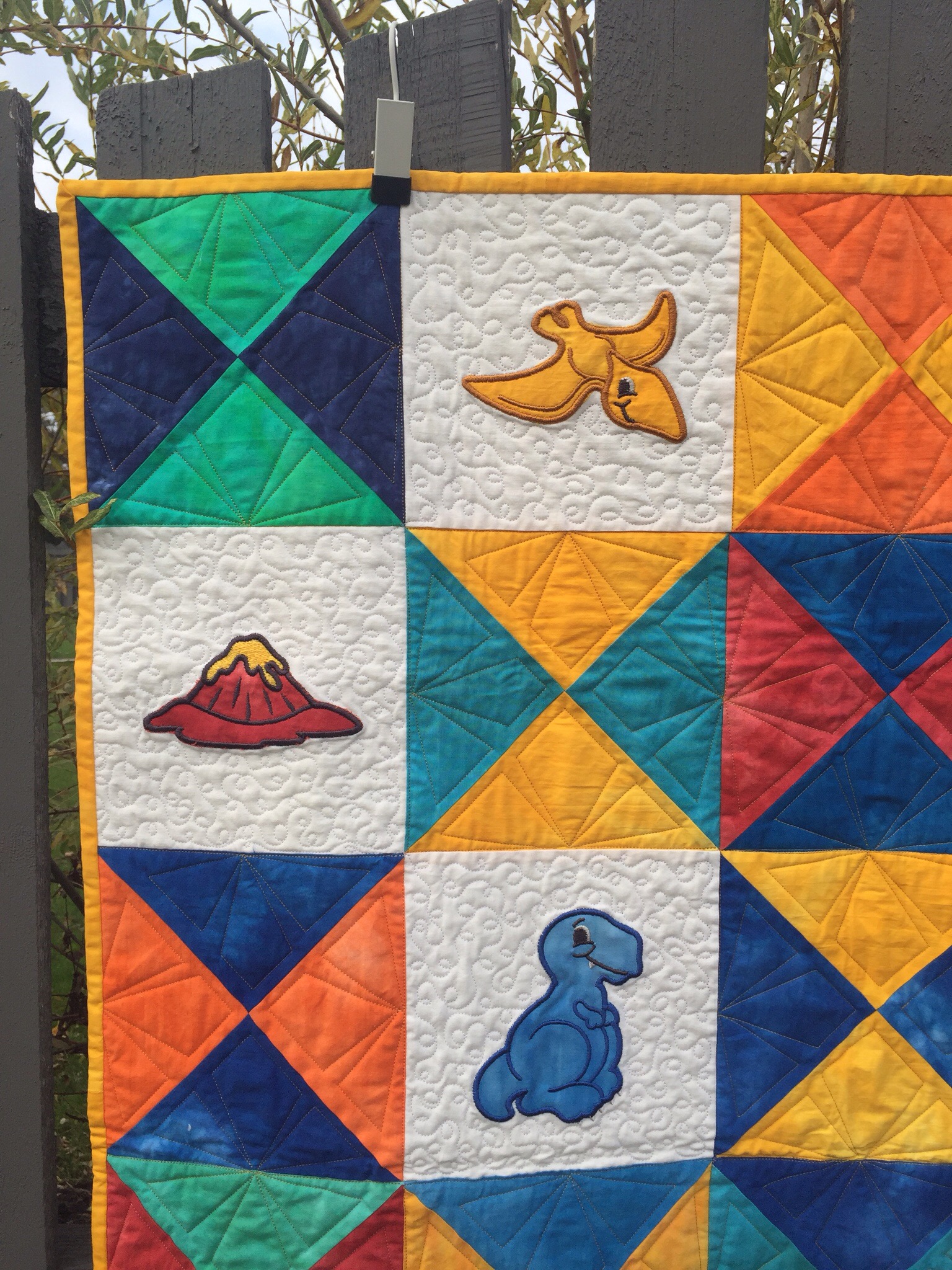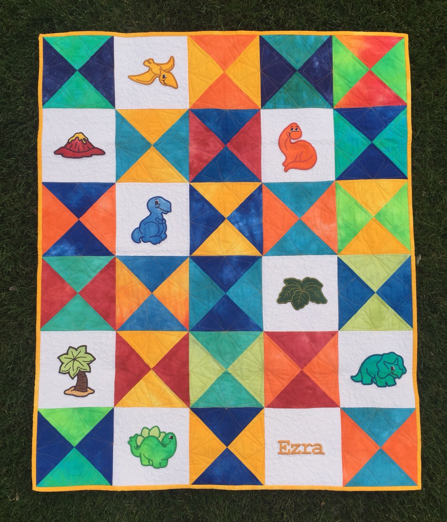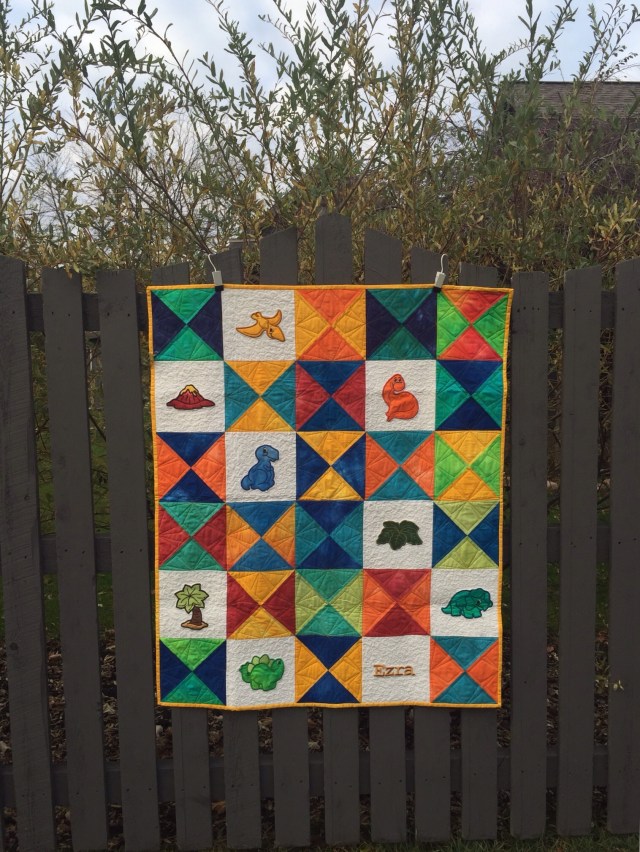 Happy Friday, everyone! The Dinosaur quilt for Ezra is done!