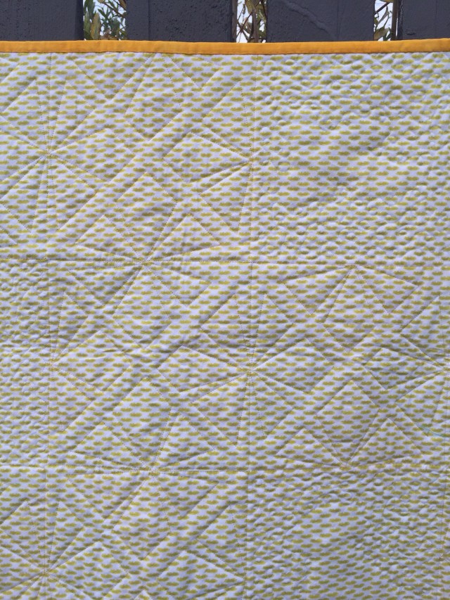 So adorable! I like what you chose for the quilting. It lets the embroidered parts and hourglasses really shine. Baby E will love it, I’m sure! (Will he be Baby E? I see that his Big brother is Little E. Hmm.)