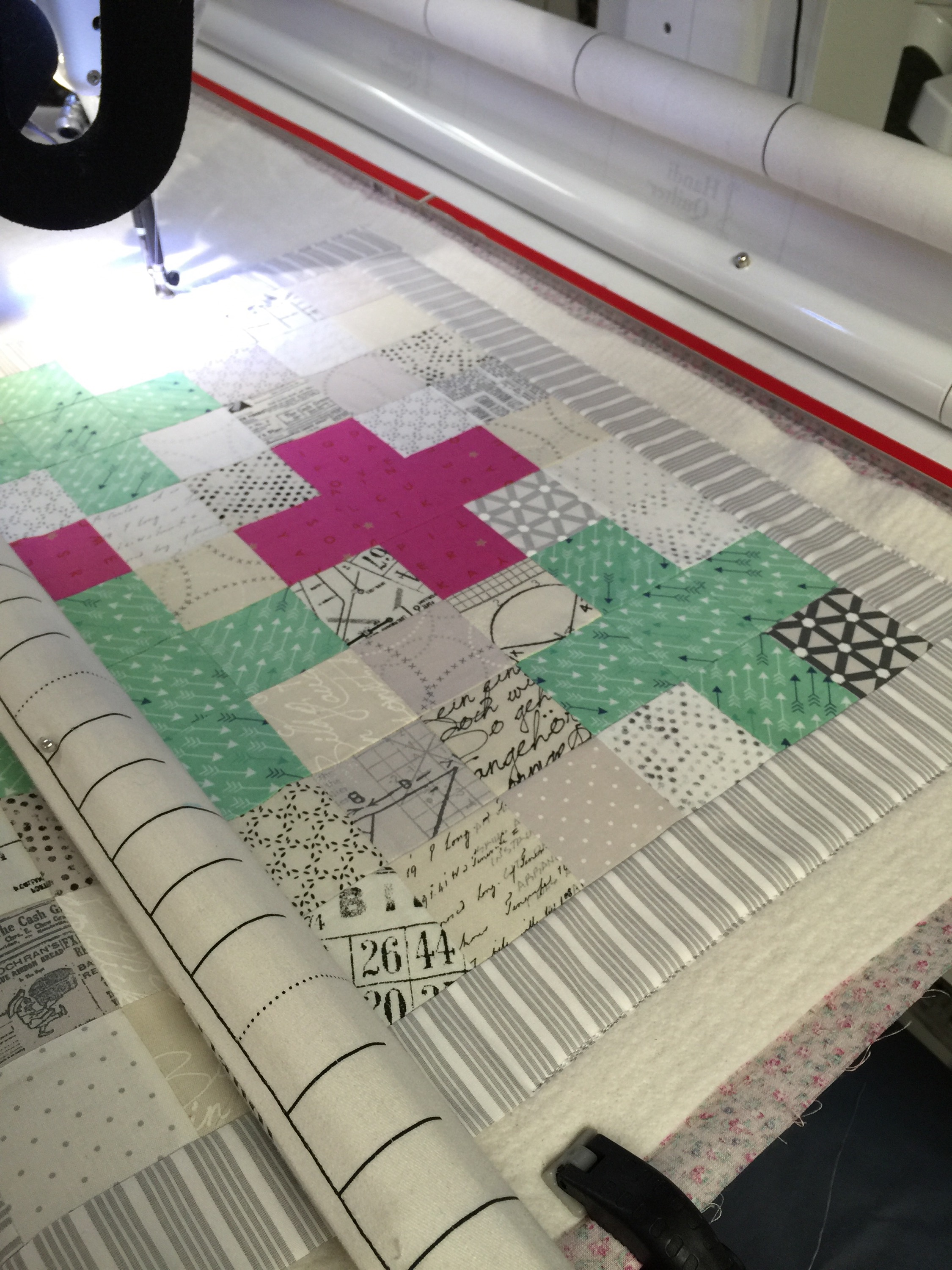 I finally did a bit of sewing yesterday. I added some borders and now have the Intrepid Thread challenge piece loaded on the long arm.