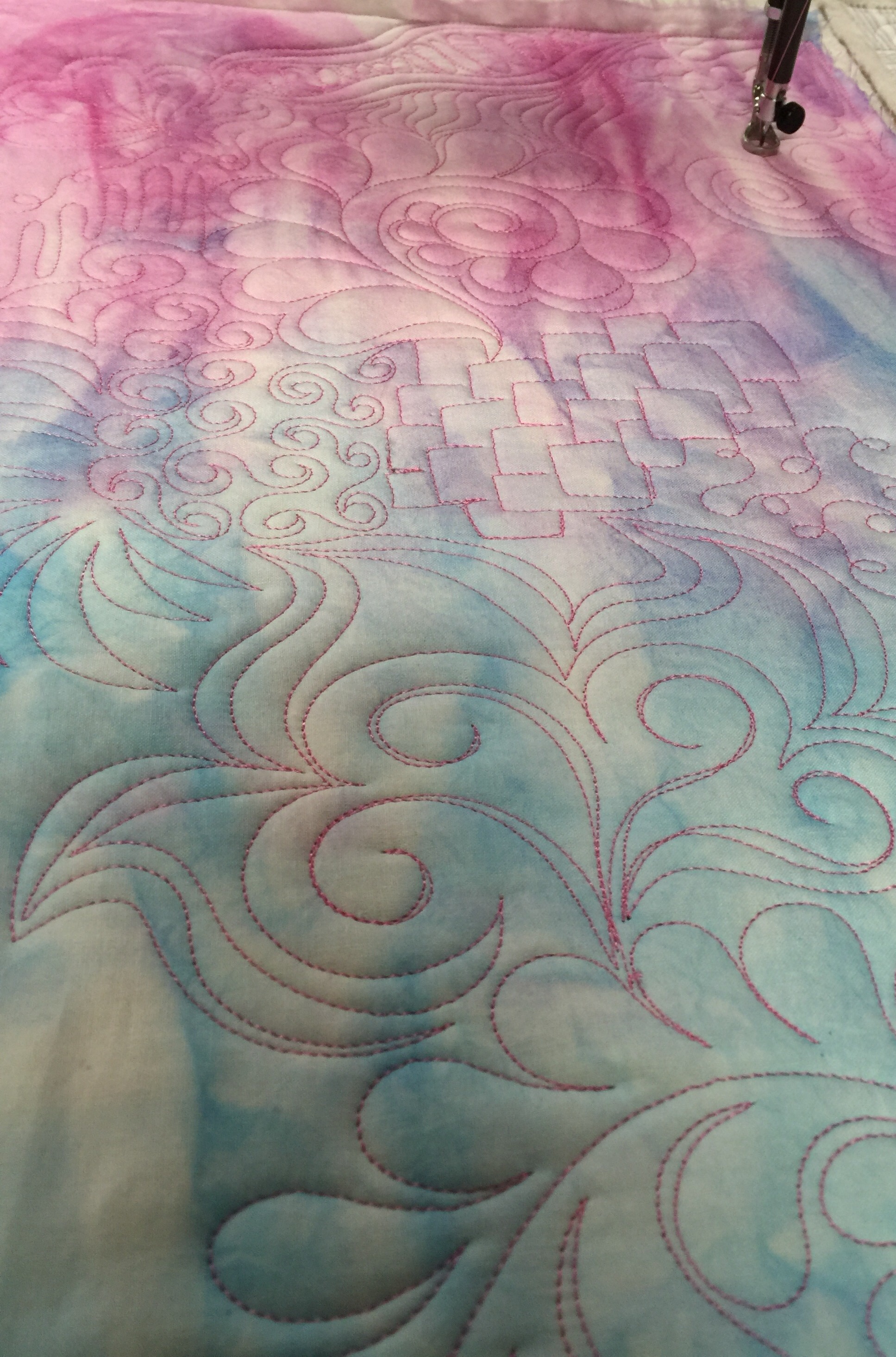 I spent some time trying to decide how to quilt it with the white board and some playing on this piece of fabric that I painted a few years ago.