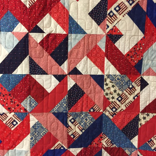 Sounds frustrating, but this is a pretty finish and I do love your use of red thread. Great quilt for the Fourth 🙂