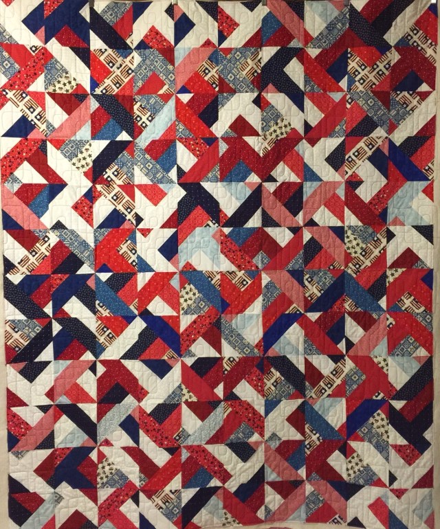 Cool top made by a member of the Stitching Sisters QOV group. The quilting was a hard fought battle though.