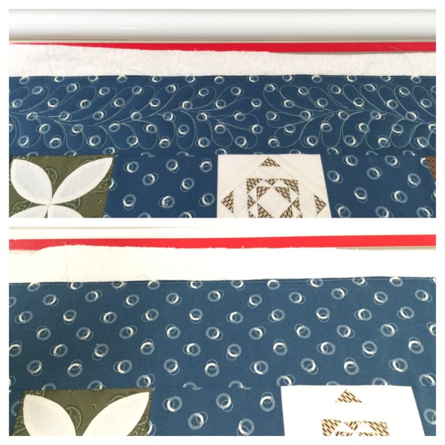 When I finally took Jane off the frame, I realized I missed quilting one of the blocks and I had to go back and fix that. I’m not sure what happened in this corner.