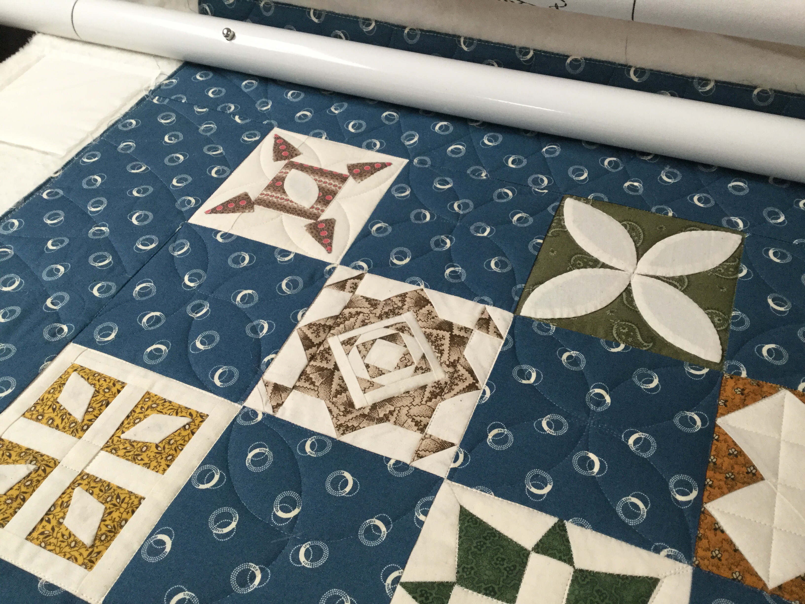 I switched to monopoly thread which is handy in some situations, but feels decidedly inauthentic for a quilt made with repro fabrics. But clearly, I was not at the top of my game and needed help camouflaging my shoddy work.