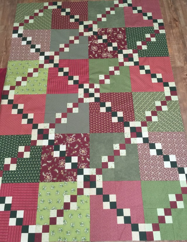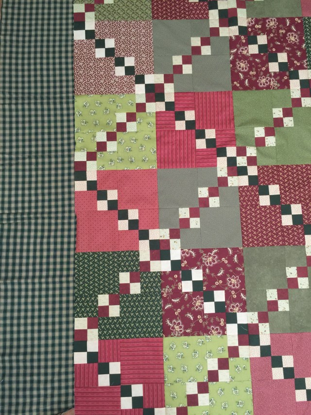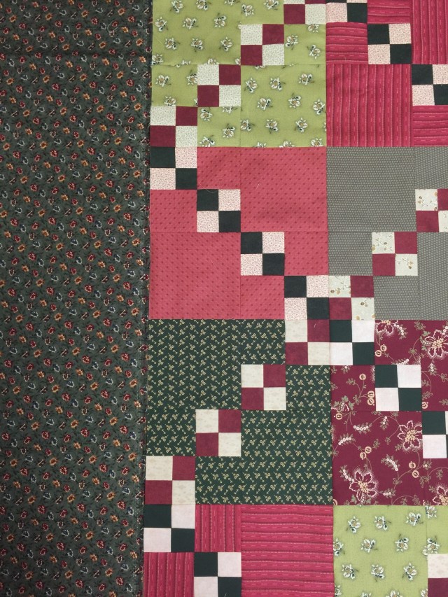 I like the cranberry border, too, or what about a narrow cranberry inner border with the green floral as a wider outer border? I recently bought beautifully pieced quilt top and backing for $20 at a local thrift shop- I’m guessing it wasn’t ever finished because two block were turned. I spent less than 30 minutes fixing it and had a beautiful quilt, well worth taking the time to fix! Glad you caught it before quilting!