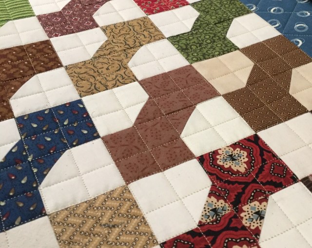 I started the quilting on General Grant’s Bow ties. I often seem to get a quilt in the fame and then get paralyzed not knowing how to quilt it. I had an idea in mind for the borders but then chickened out. I thought this would be easier. I don’t care for it much. But I’m not ripping.