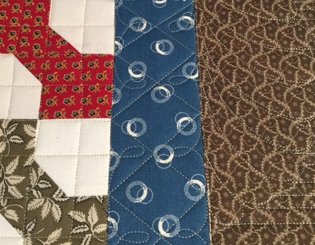Katy, I think the thread color is very nice and love where your quilting is going. I especially love the extra loop in the crosshatching. Can’t wait to see the generals all stitched up!