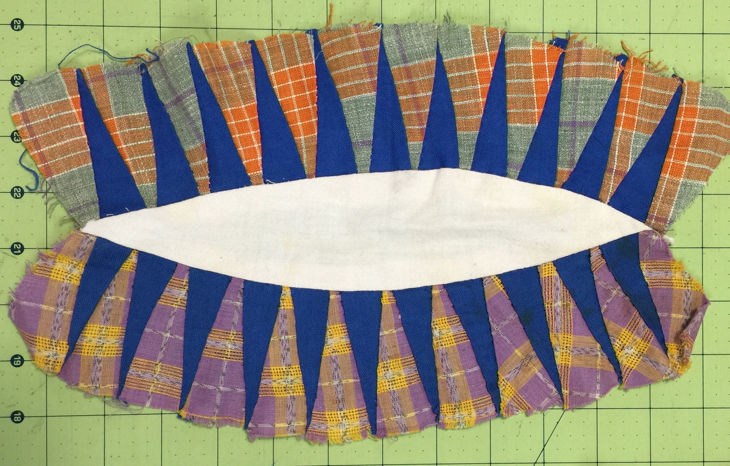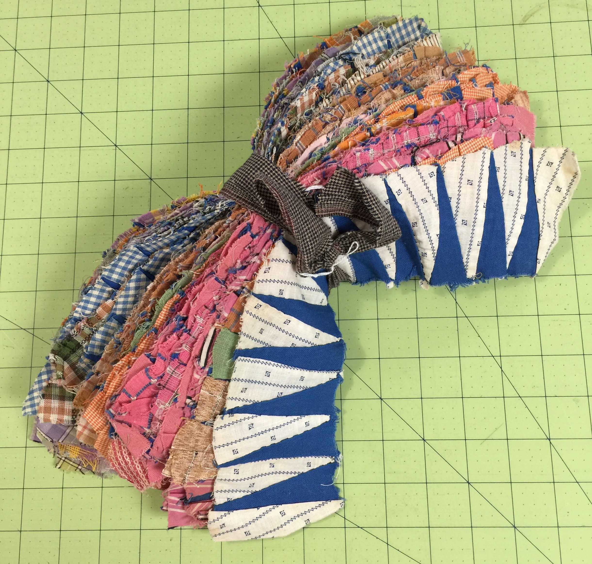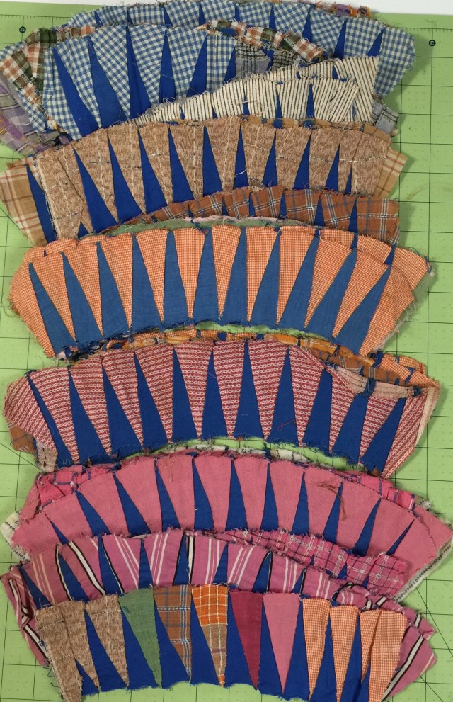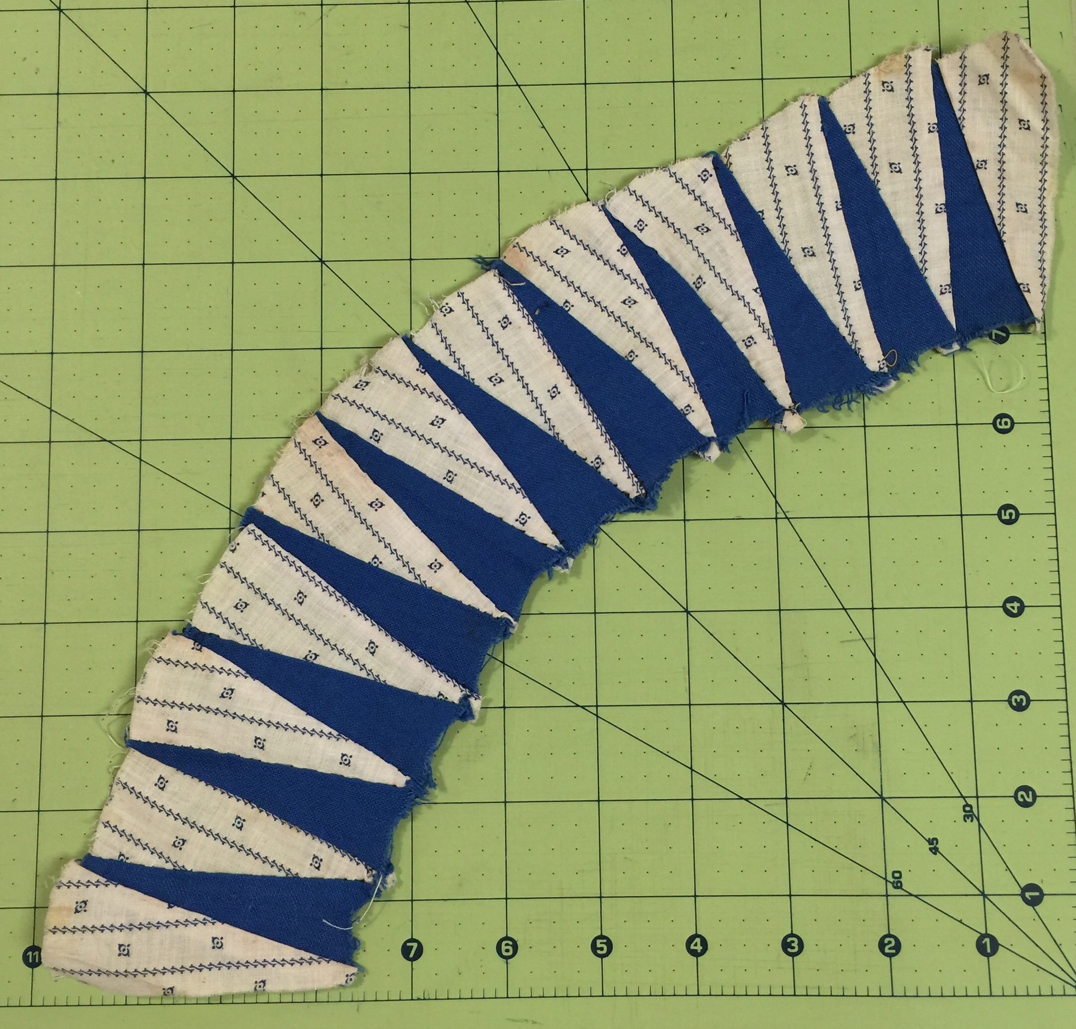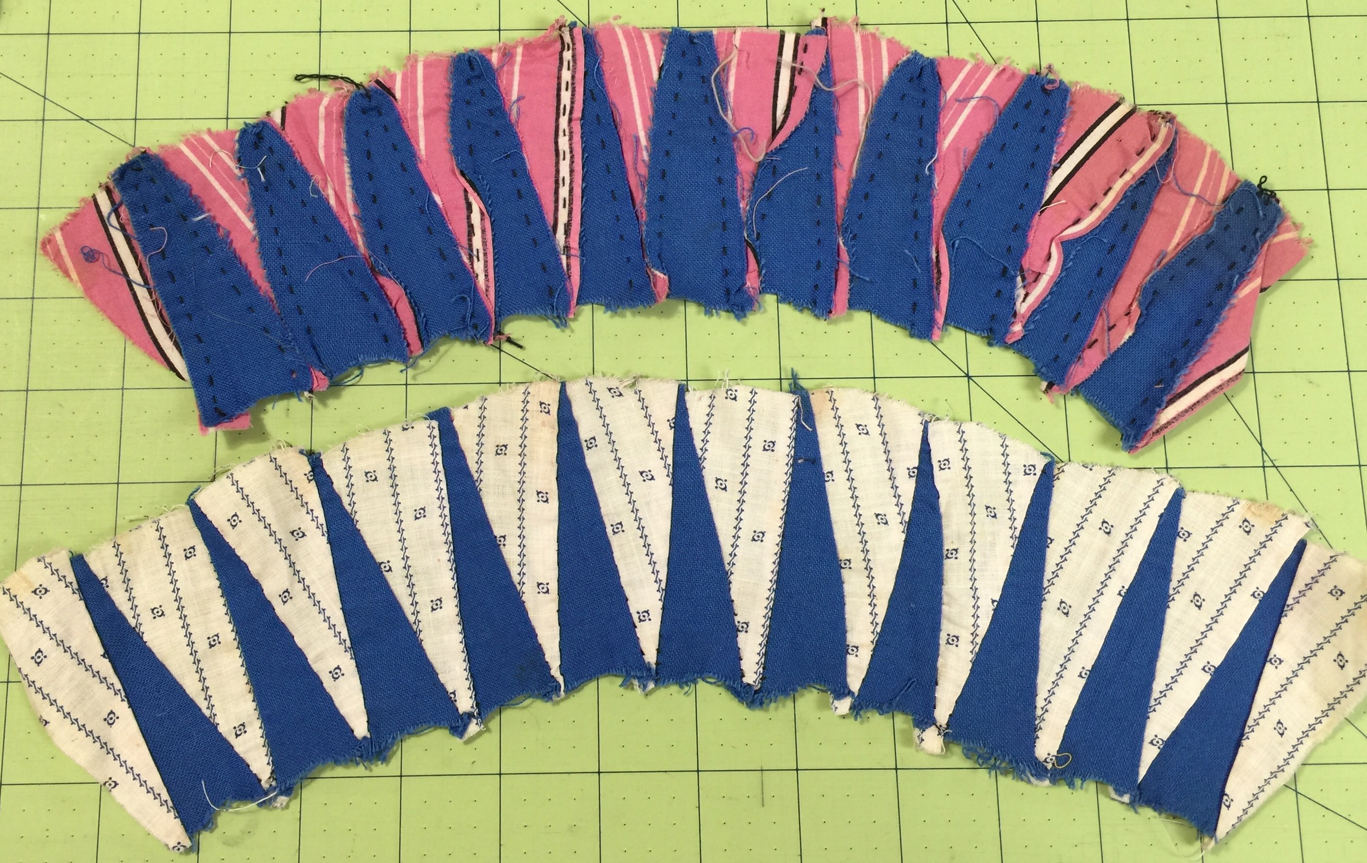 What a treasure you picked up…however challenging! This may be the perfect time to “think outside the box” because you are going to lose the points anyway if you sew them in their originally intended traditional way. I think it is wonderful that you are honoring the original maker by taking up the challenge to turn them into a quilt…good luck and enjoy!