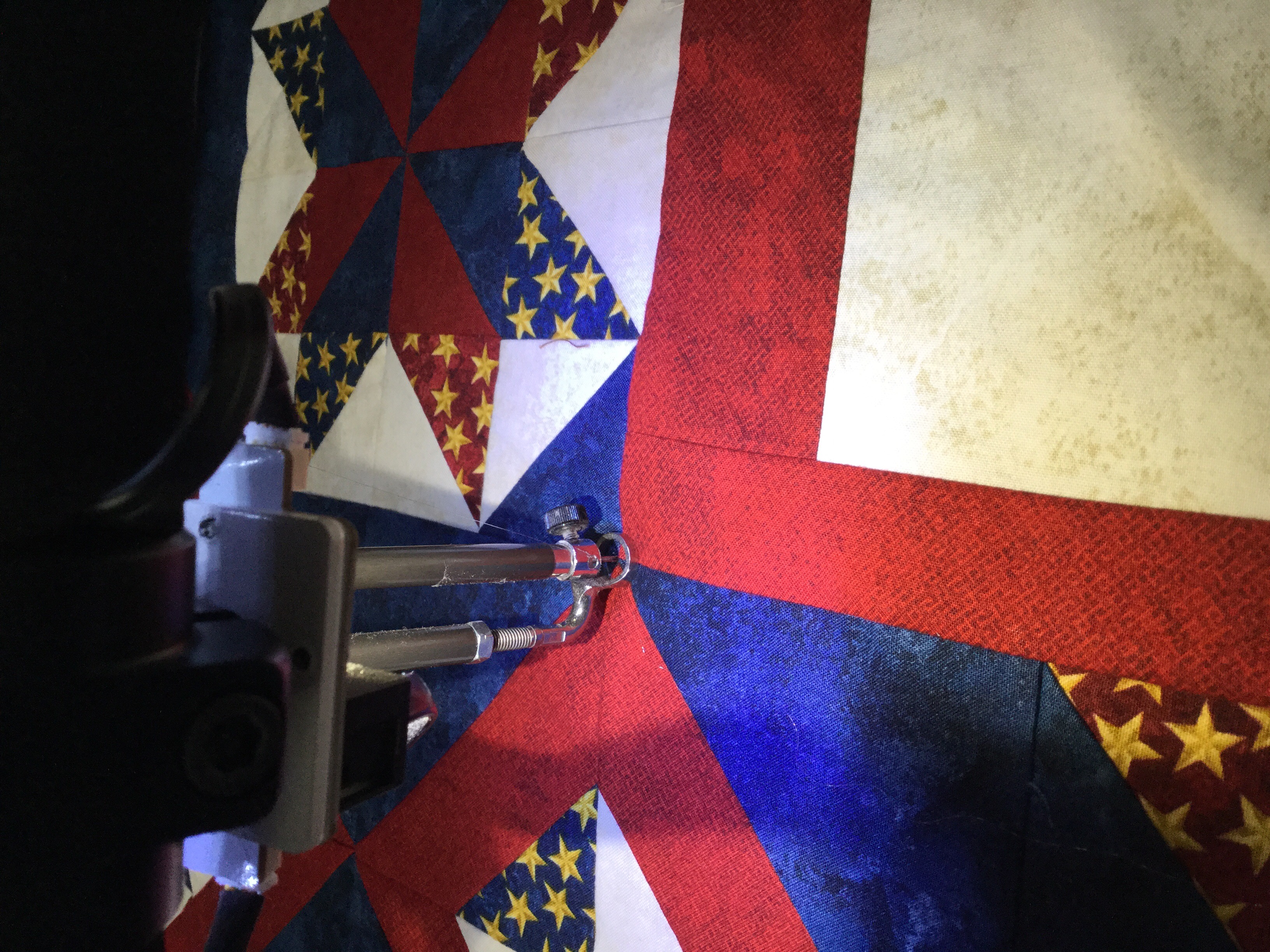 I’ve been working on quilting Quilts of Valor this week for the Stitching Sisters QOV group. Forgive the terrible picture of this beautiful top.