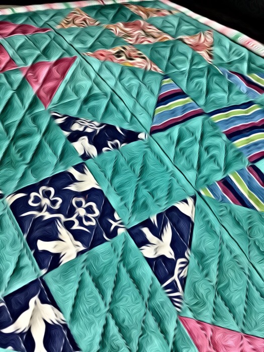 This is a great finish. I’ve often quilted on the diagonal, but never thought about diamonds. Great idea.